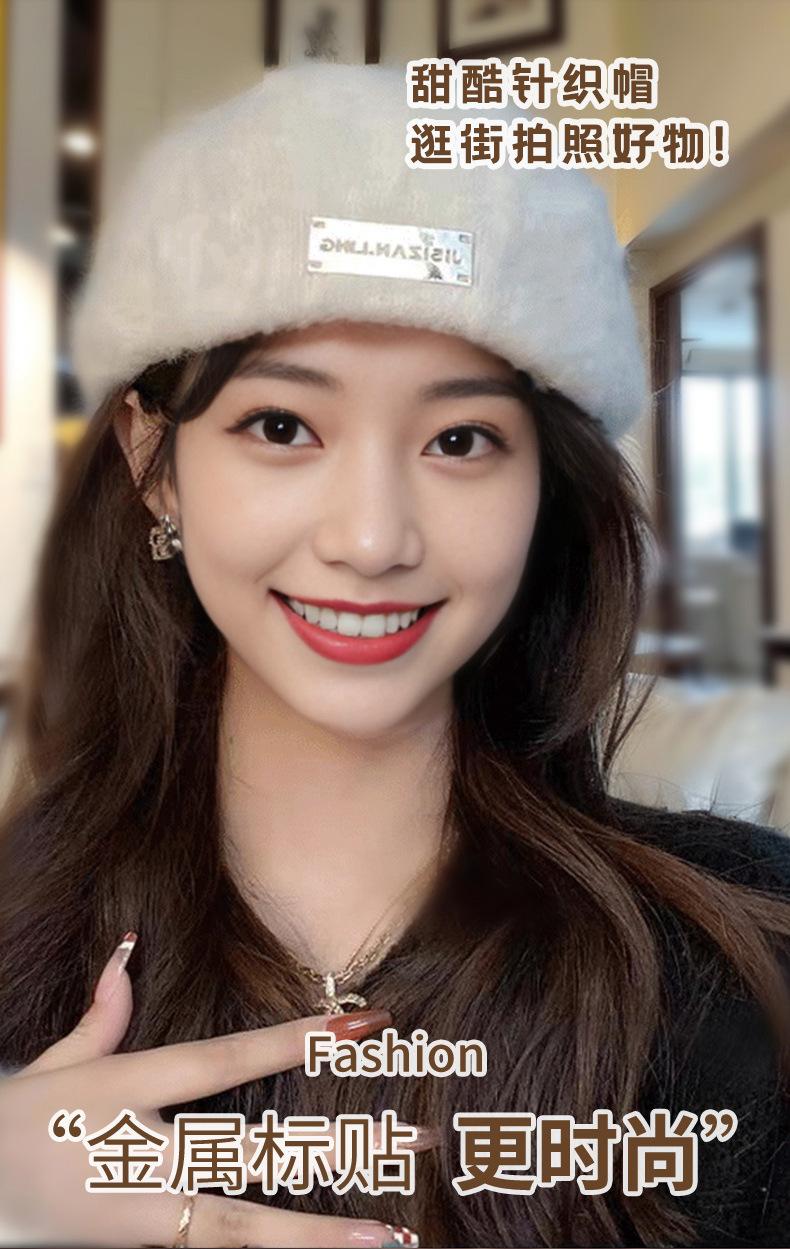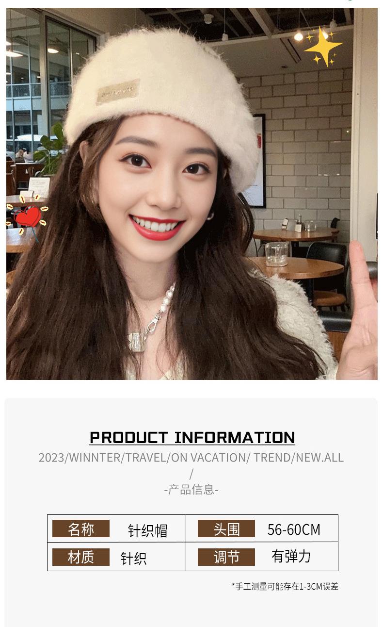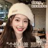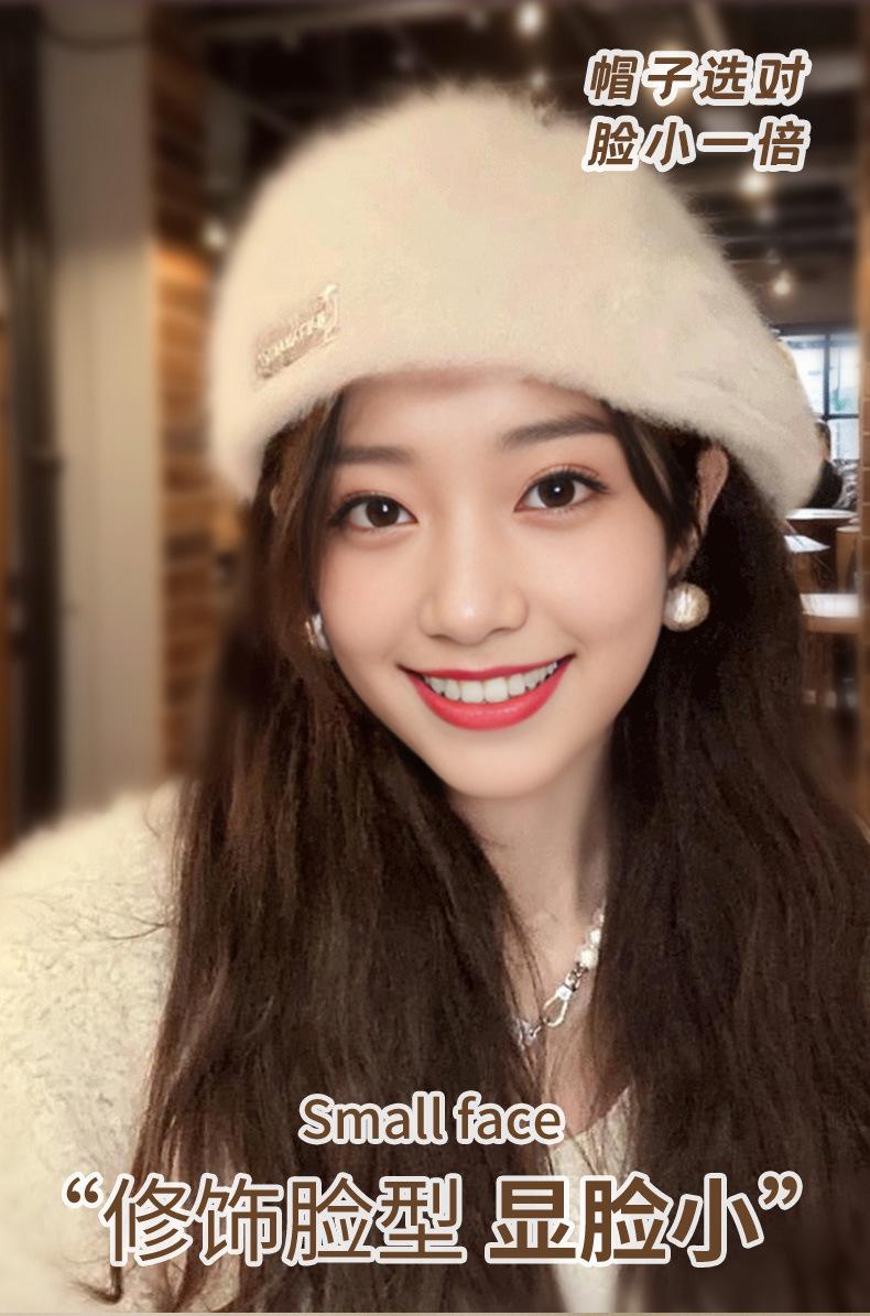 Sombrero cálido de otoño e invierno de piel de conejo para mujer, boina nueva anti-desgaste, retro versátil de doble uso, gorra de visera, sombrero de pintor de color sólido
