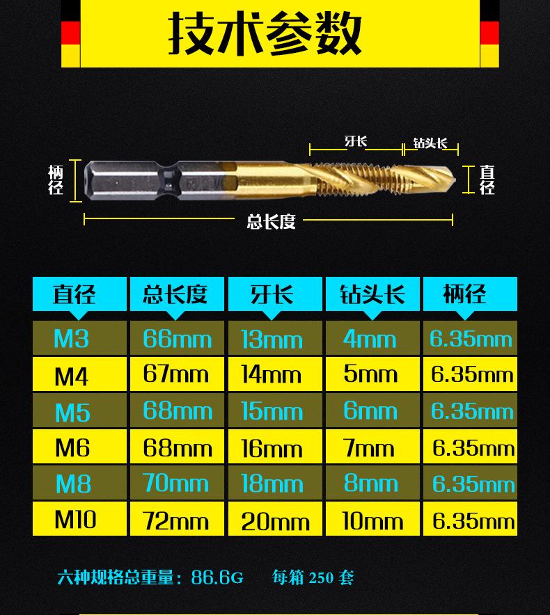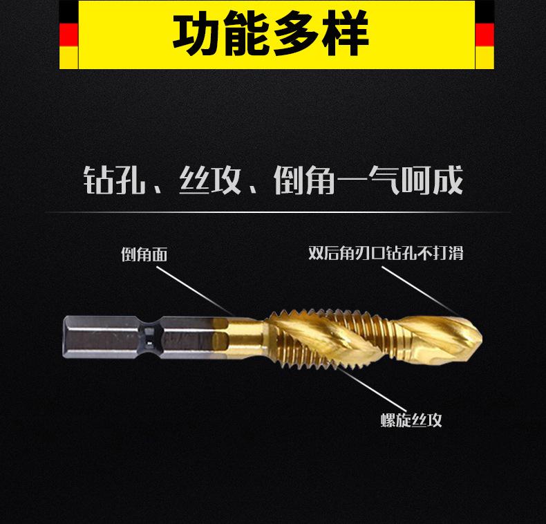 Macho de máquina con vástago hexagonal, taladrado y roscado, biselado, roscado de alambre compuesto integrado, juego de brocas de alambre con manguito dentado con apertura en espiral de acero de alta velocidad