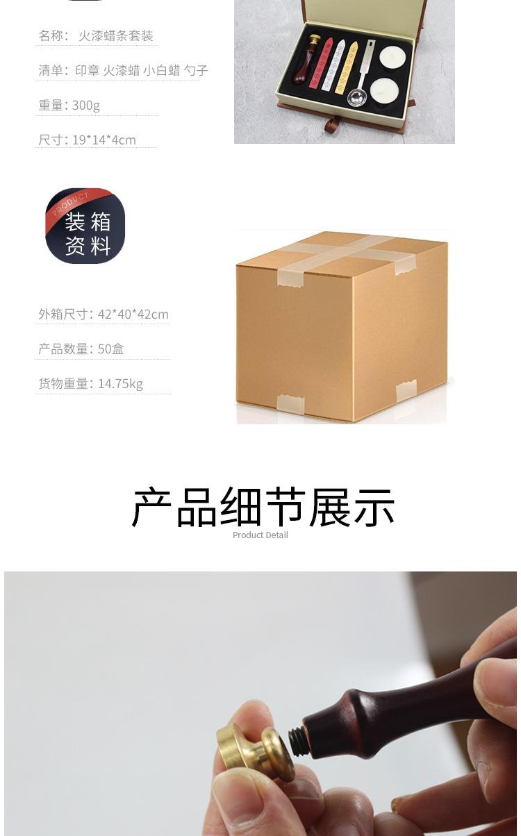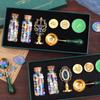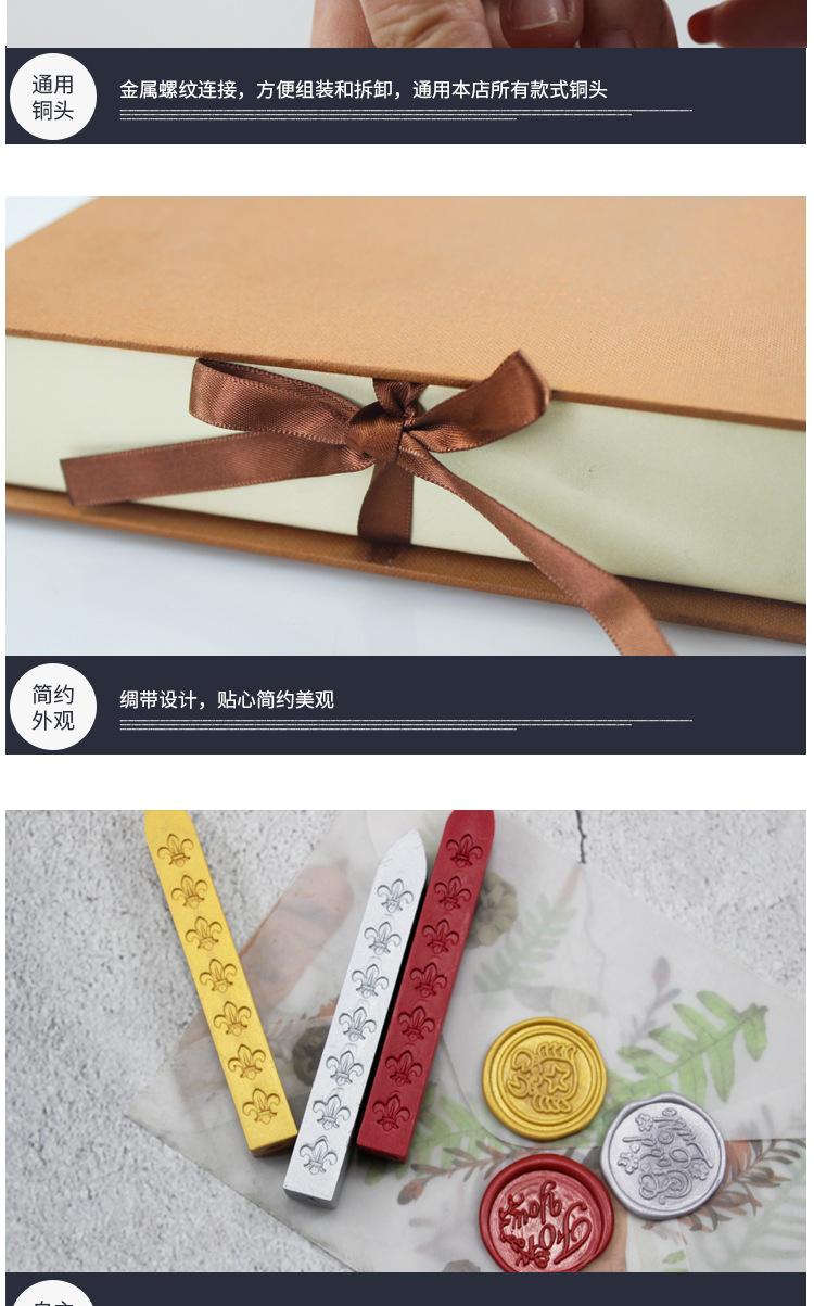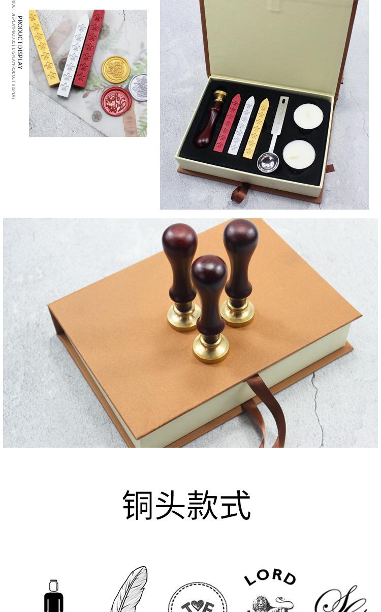 Seis combinaciones de bendiciones retro, cabeza de cobre, mango de palisandro, sello de laca al fuego, caja de regalo con tira de cera, invitación de boda |