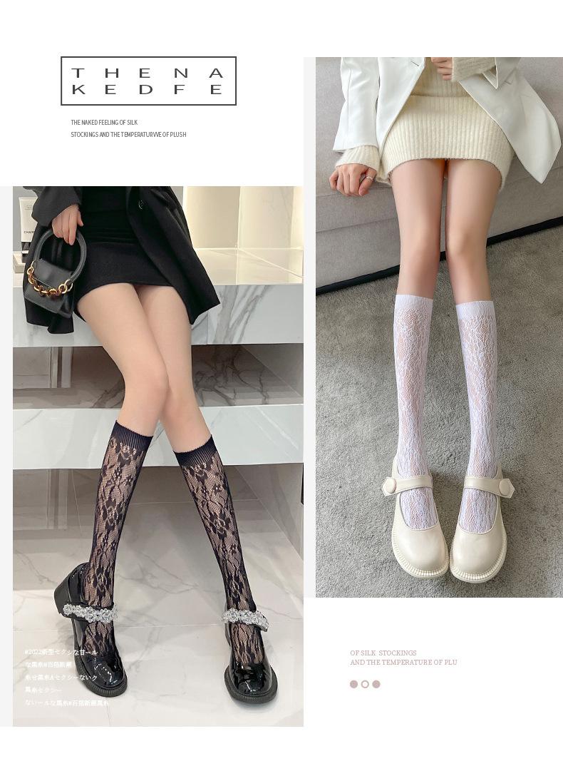 Calcetines hasta la pantorrilla de encaje blanco para mujer Verano Lolita Calcetines de pila Lolita Jk Calcetines hasta media pantorrilla