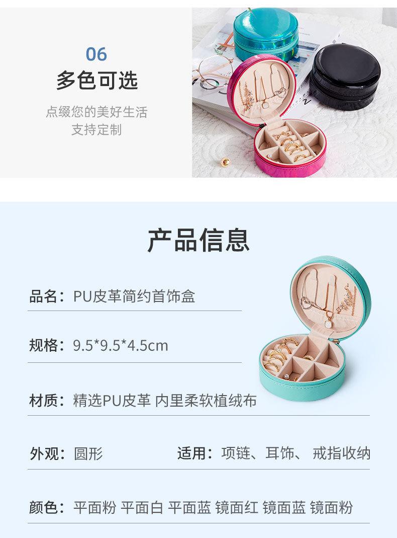| Nombre del producto | Caja redonda de joyería de piel PU | Respecto al peso y tamaño [puede haber ligeros errores en diferentes lotes debido a la medición manual] |