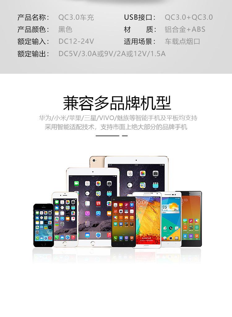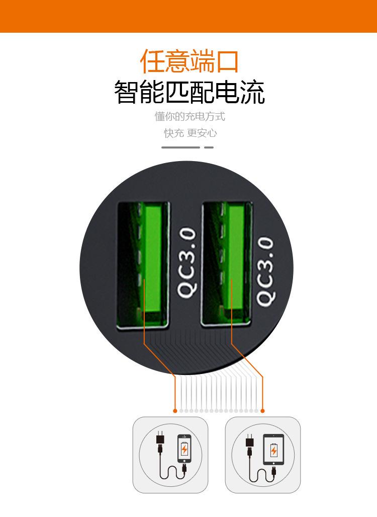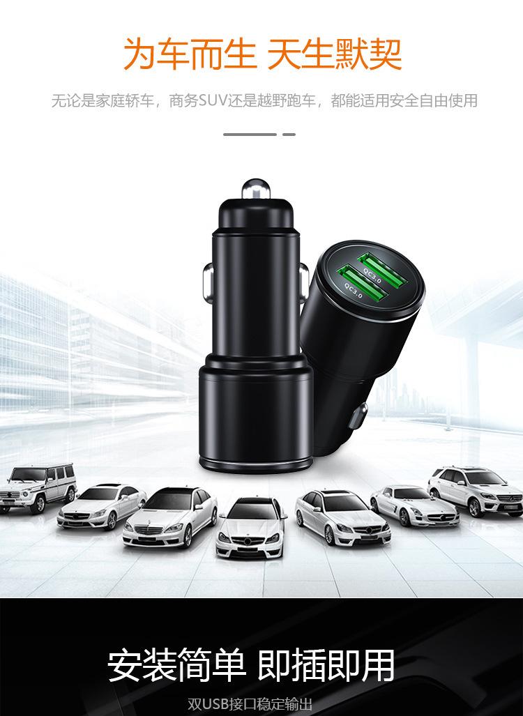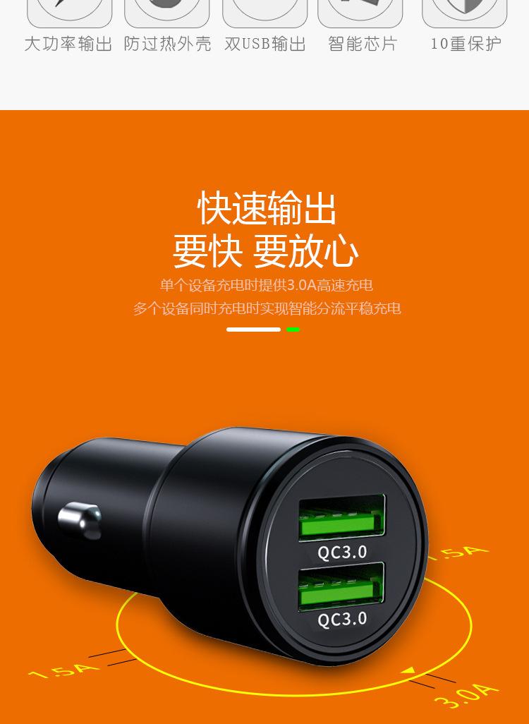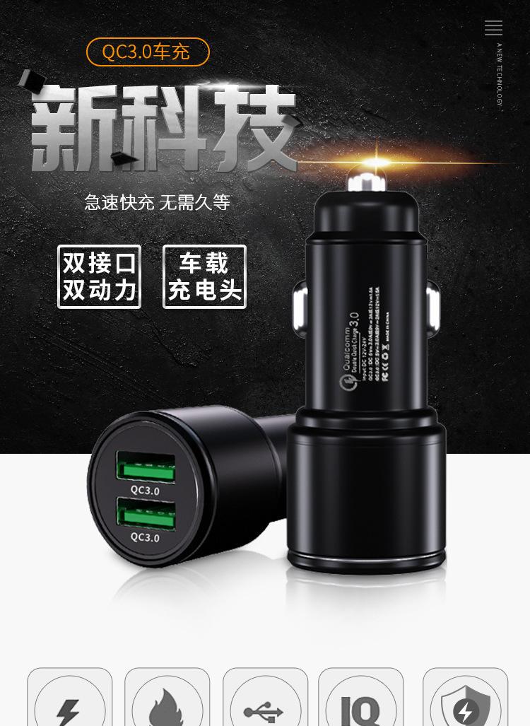Cargador de coche para encendedor de cigarrillos, carga rápida, carga flash USB, carga rápida uno a dos, cabezal de conversión de cargador de coche QC3.0