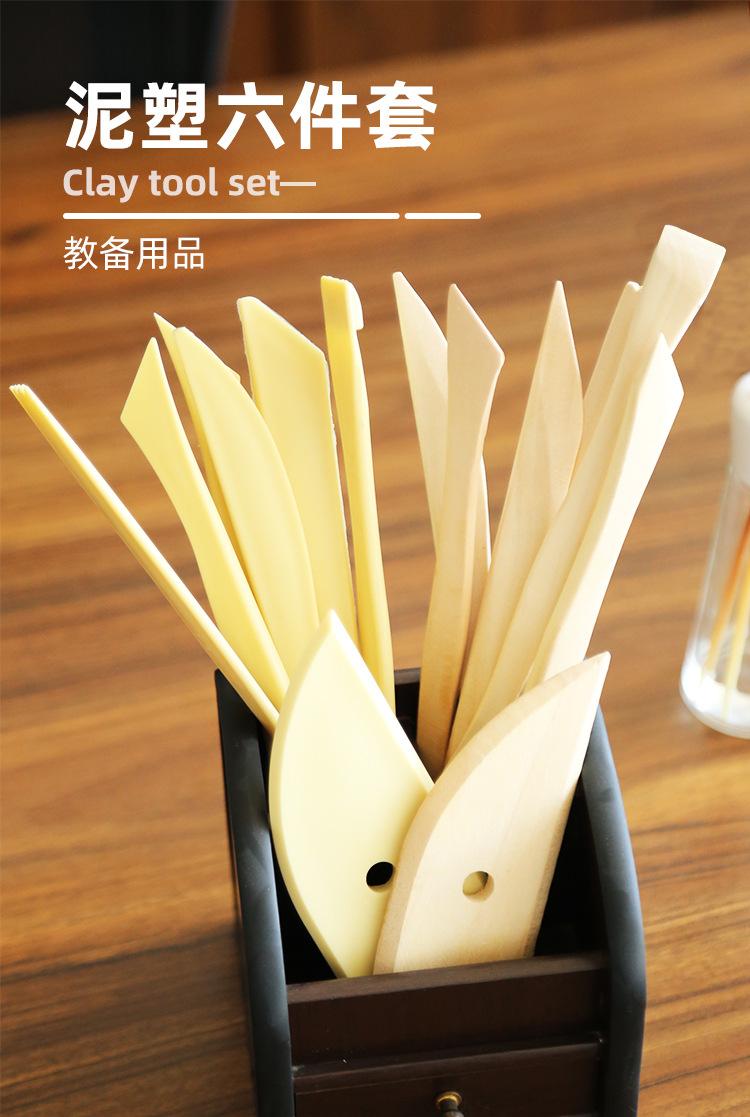 Herramientas de arcilla, 6 piezas, cuchillo de cerámica de madera para estudiantes, bricolaje, arcilla blanda, reparación de arcilla, juego de herramientas de tallado en blanco, venta al por mayor