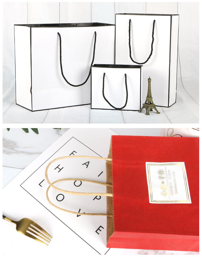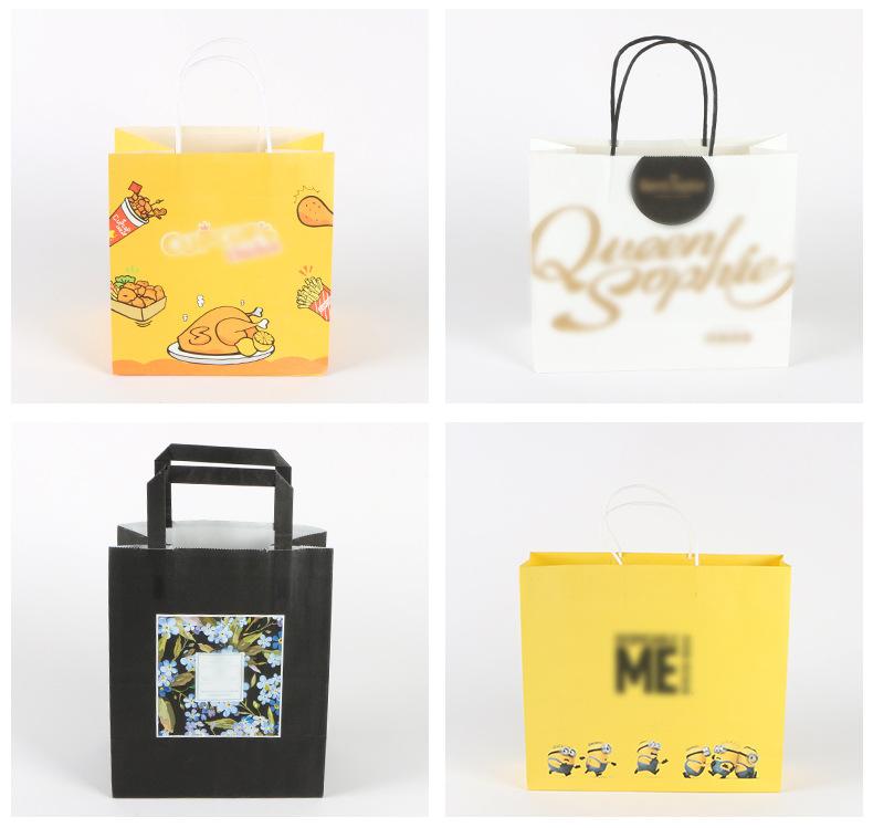 Bolsa de papel desechable de cartulina blanca, bolsa de regalo con dibujos animados, bolsa de ropa, bolsa de embalaje para impresión publicitaria, bolsa de papel tipo cartera