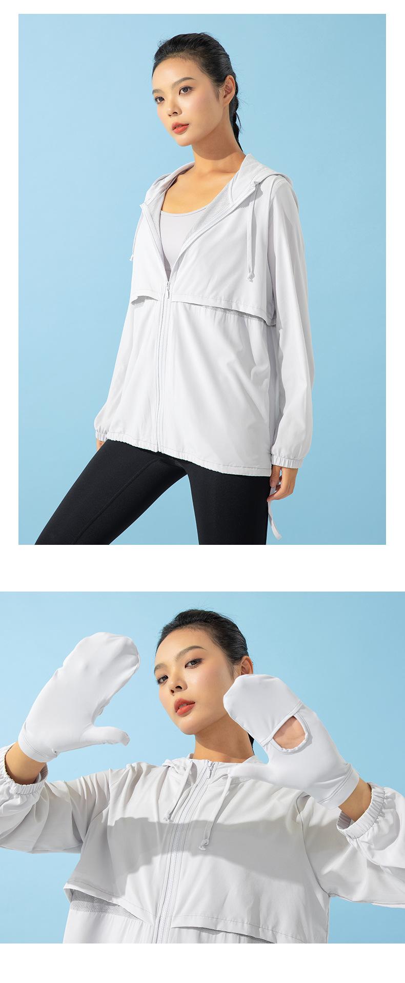 Ropa de Protección Solar para Mujer en Otoño e Invierno Chaqueta Fina de Secado Rápido Largo Medio Cortavientos Transpirable con Guantes Protección UV Ropa de Protección Solar