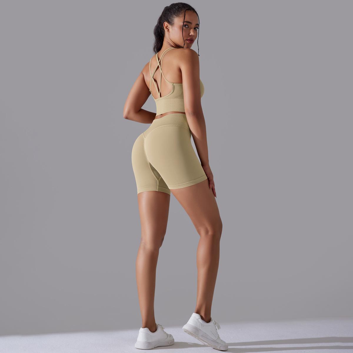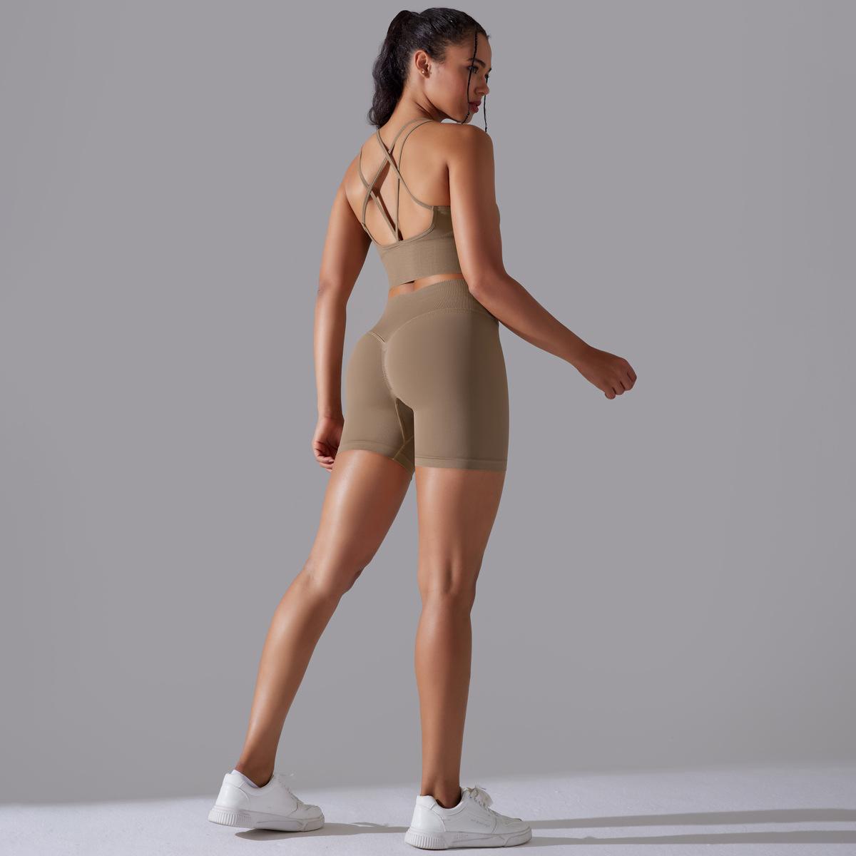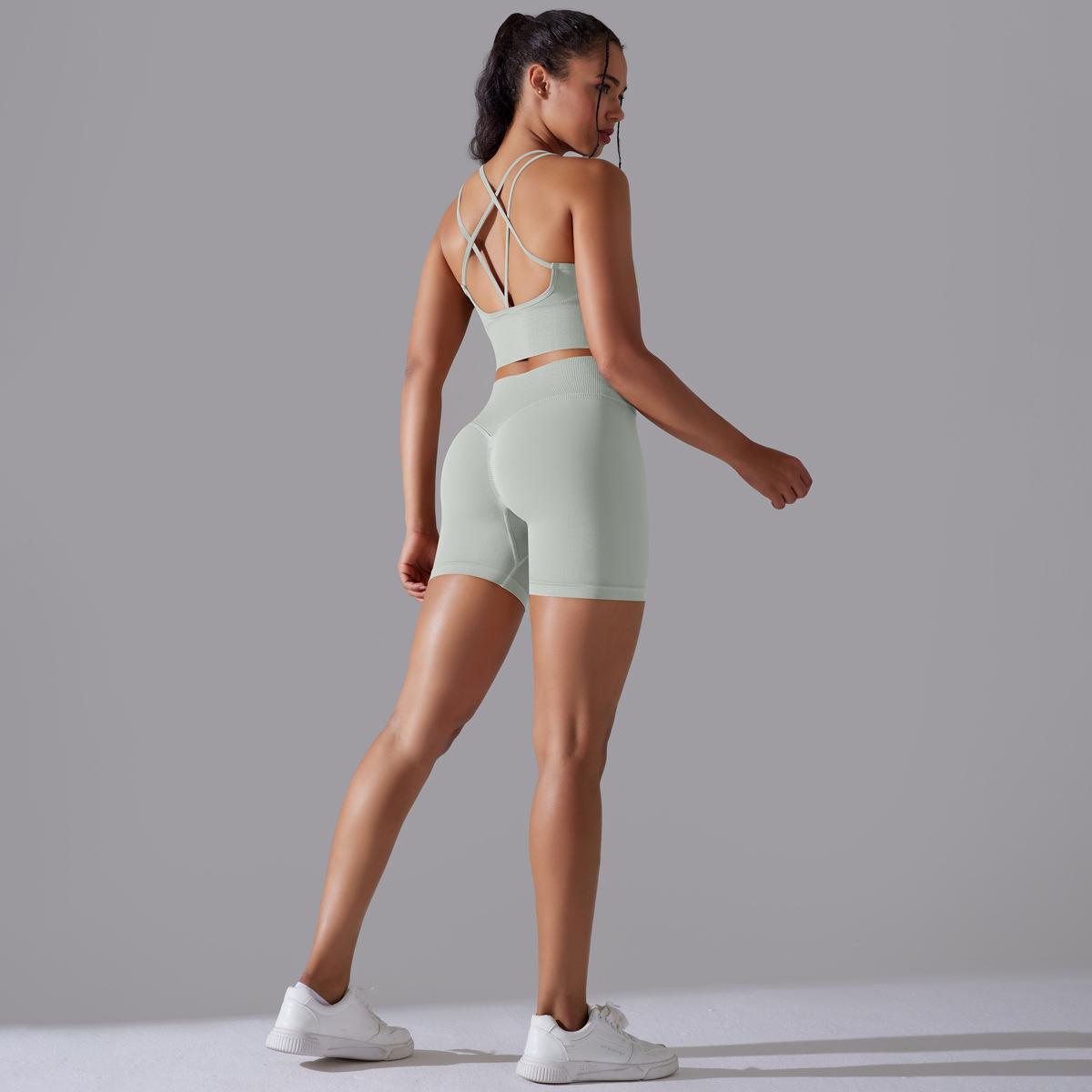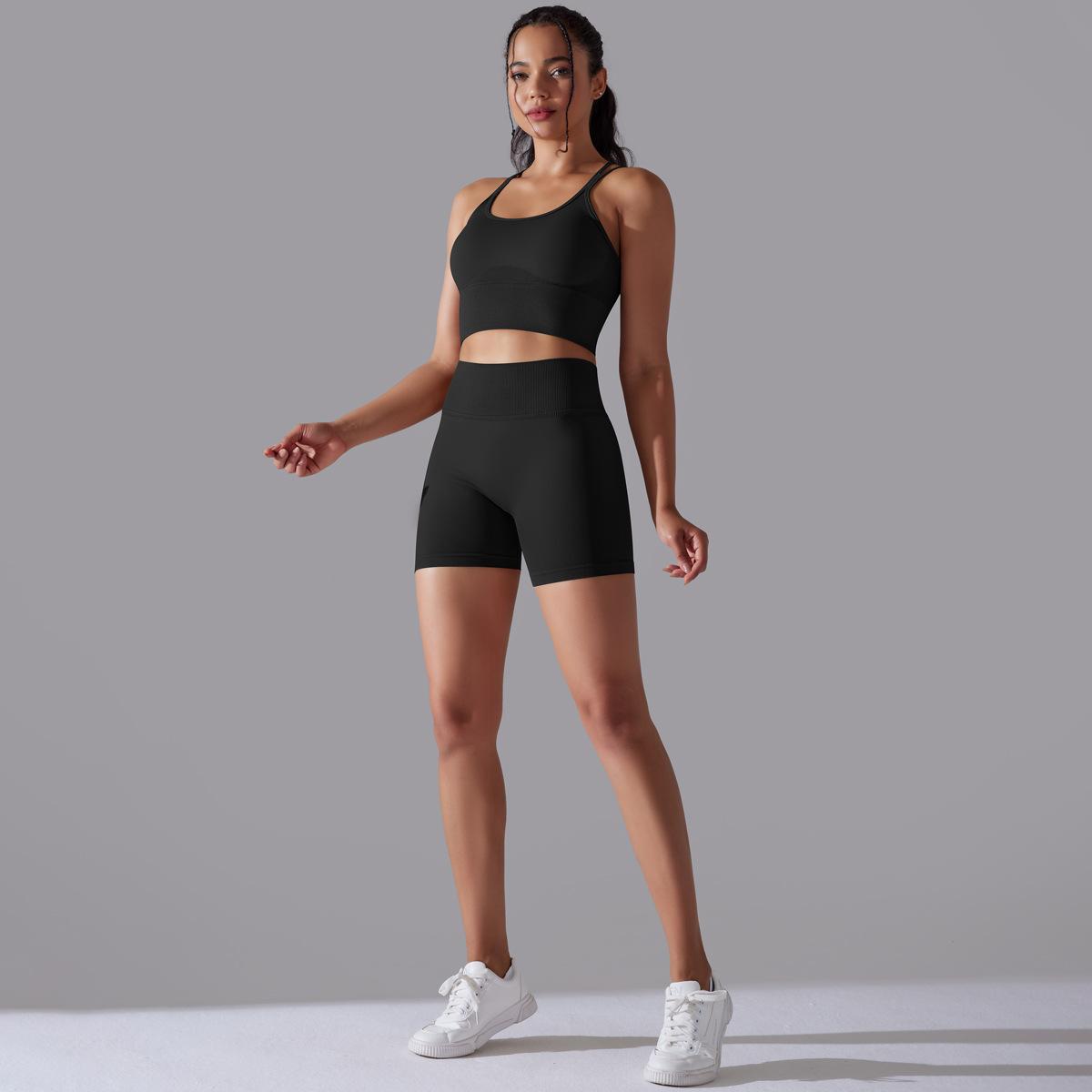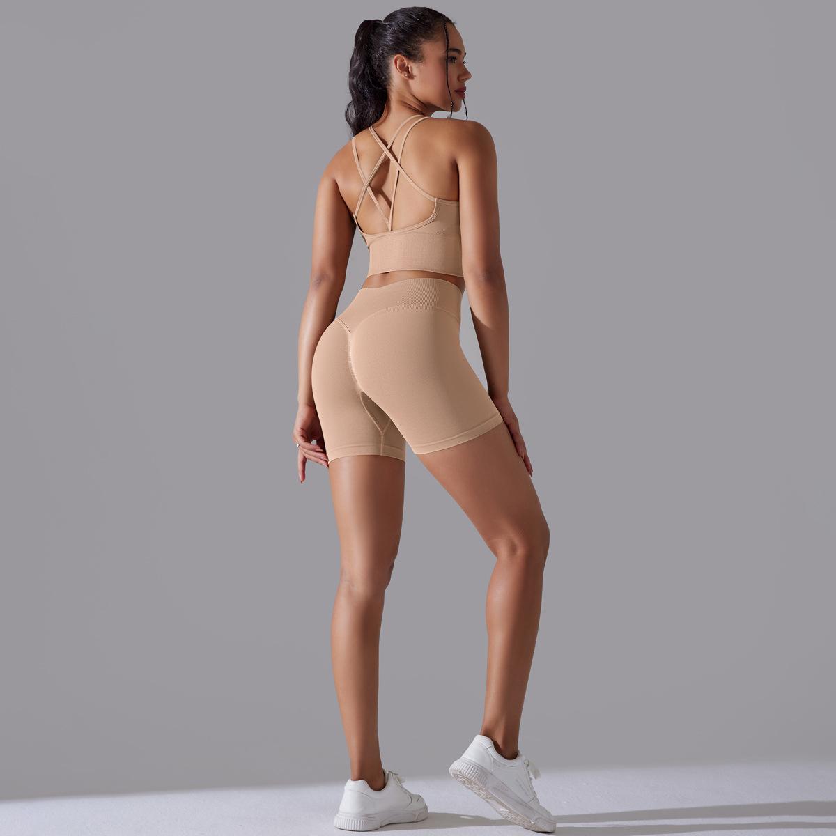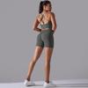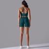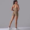 Traje de yoga ajustado deportivo de alta elasticidad con espalda descubierta de color sólido tejido sin costuras transfronterizo europeo y americano, traje de dos piezas para correr y fitness