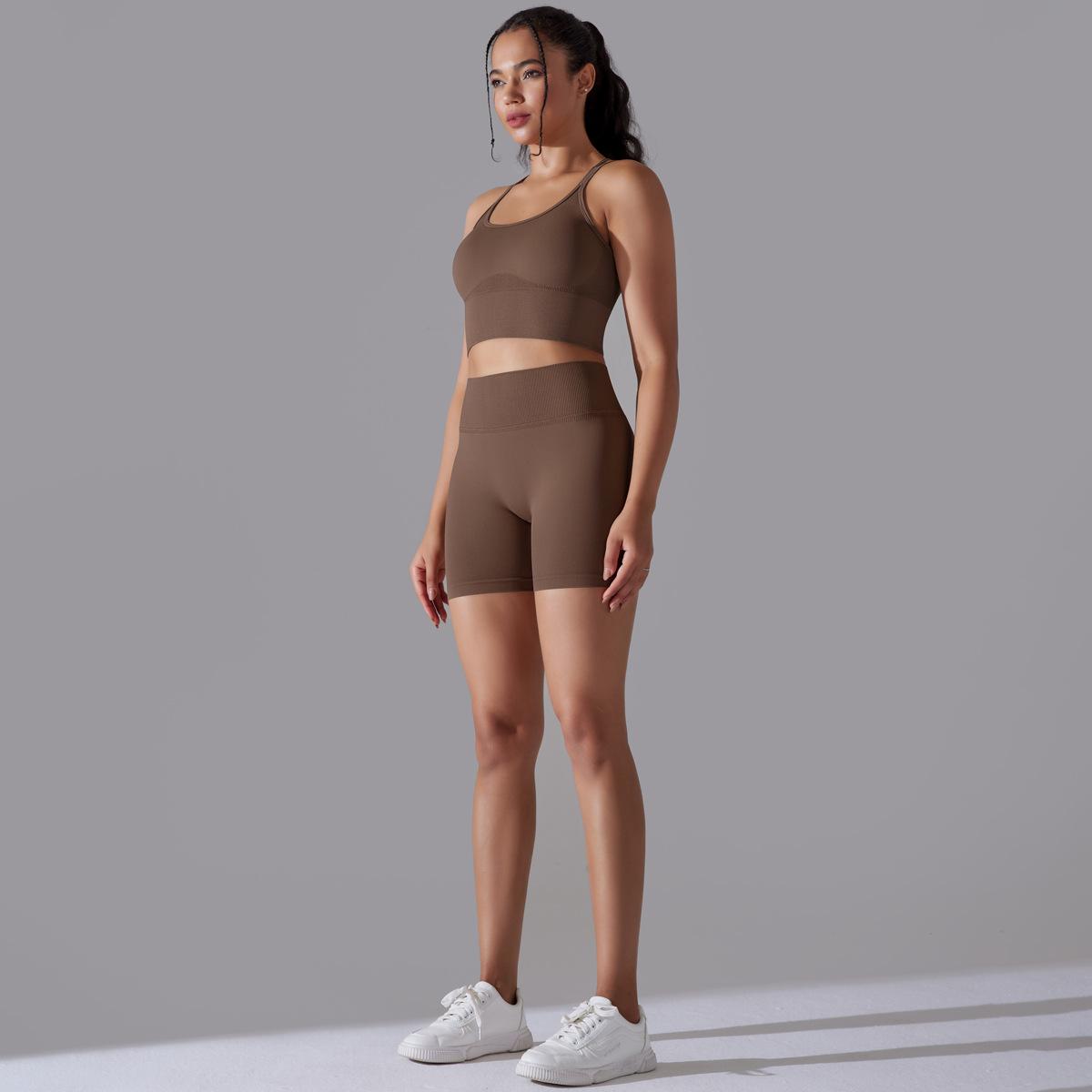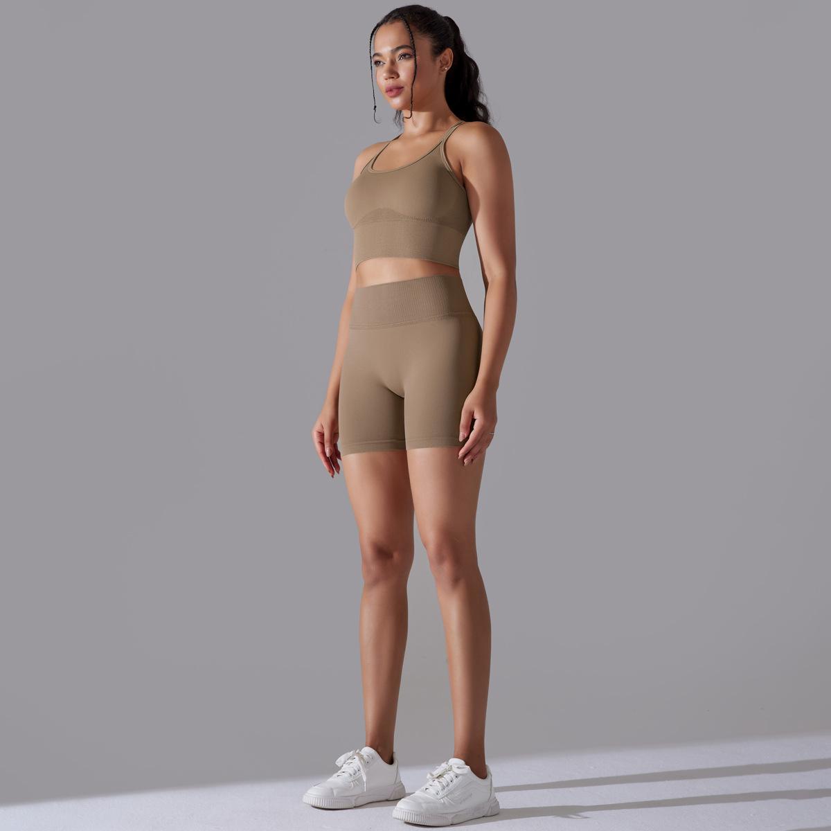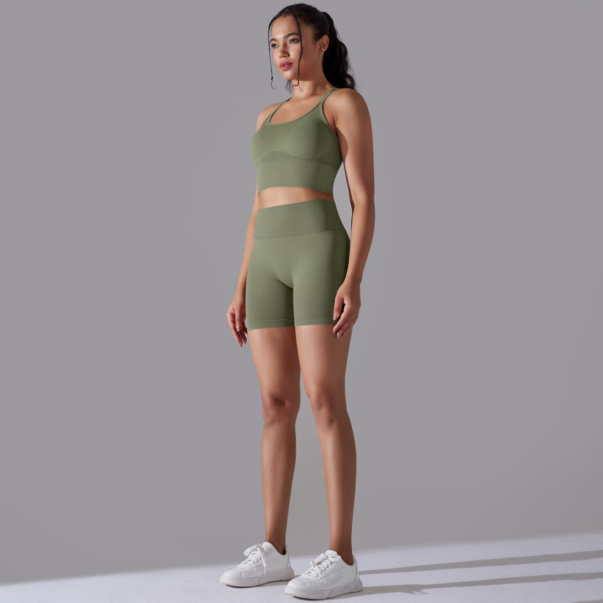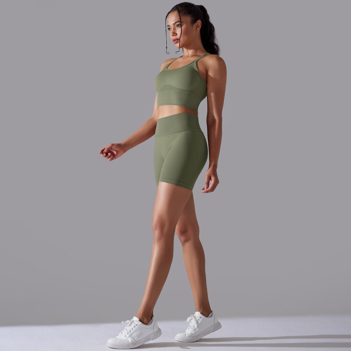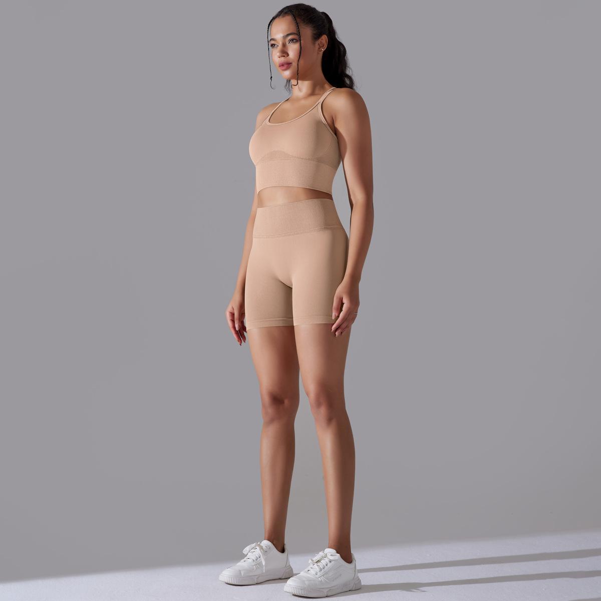 Traje de yoga ajustado deportivo de alta elasticidad con espalda descubierta de color sólido tejido sin costuras transfronterizo europeo y americano, traje de dos piezas para correr y fitness