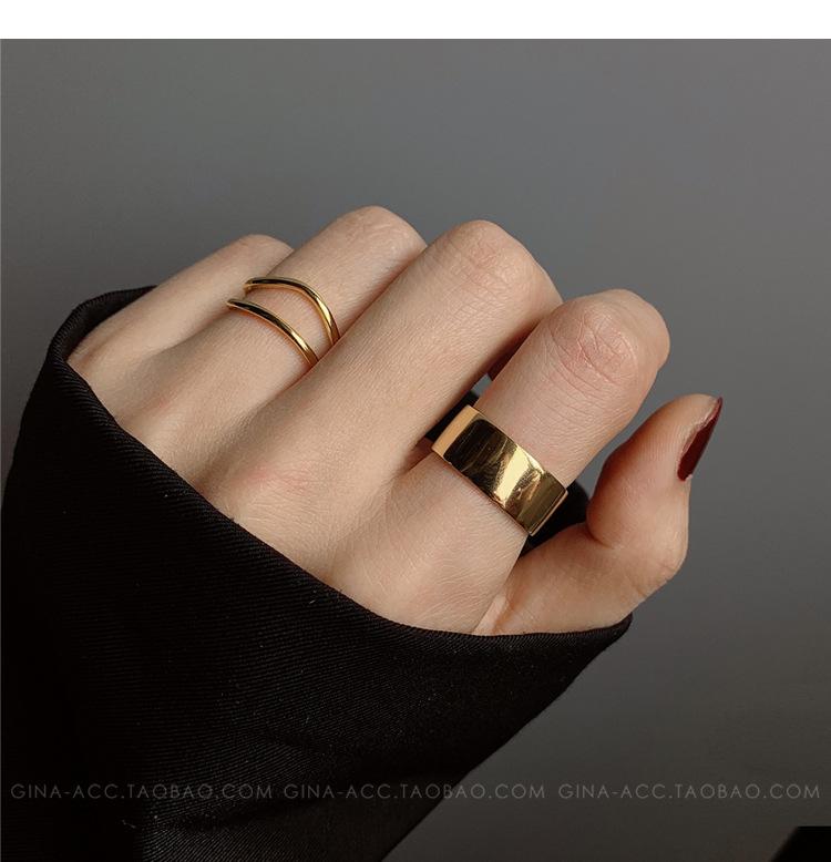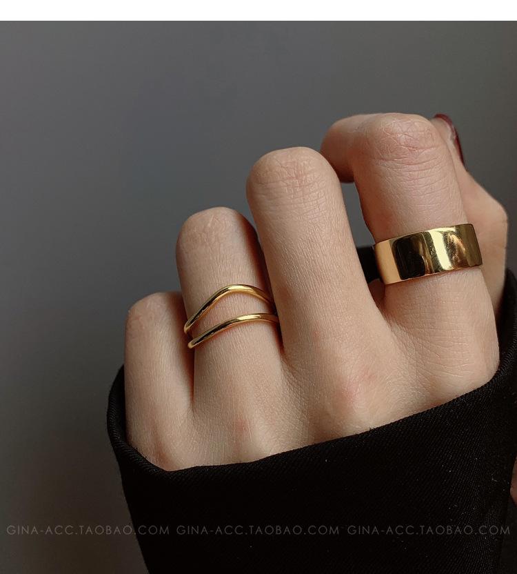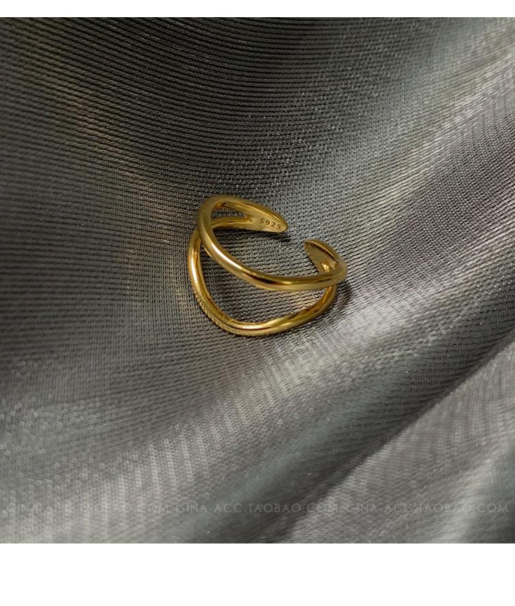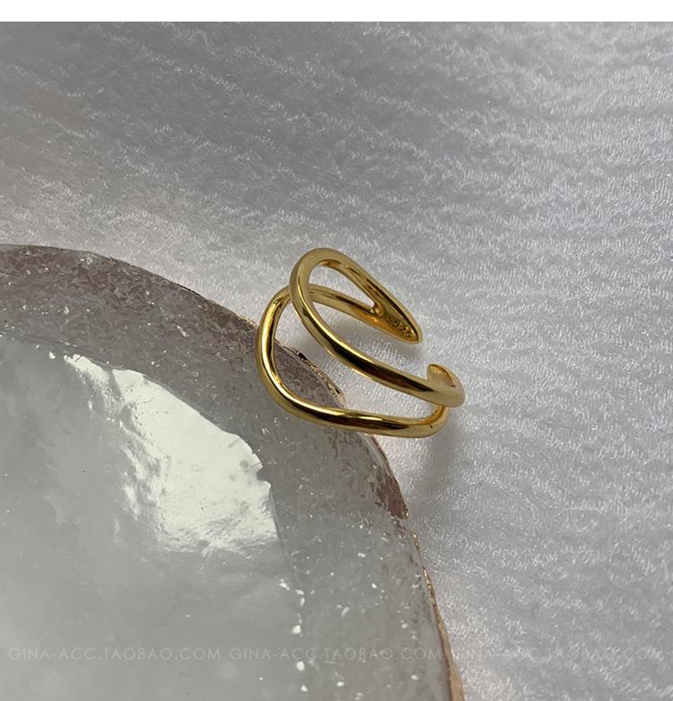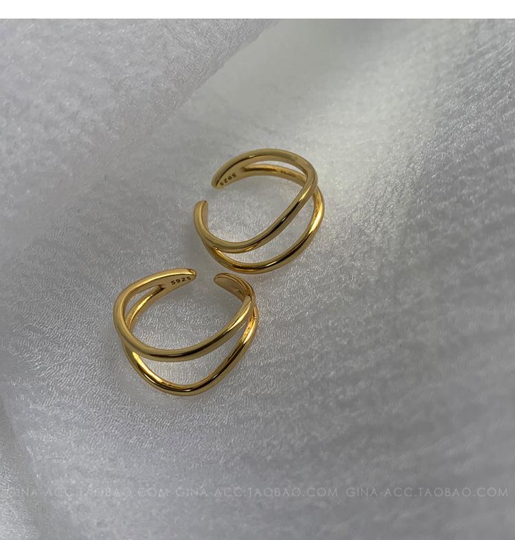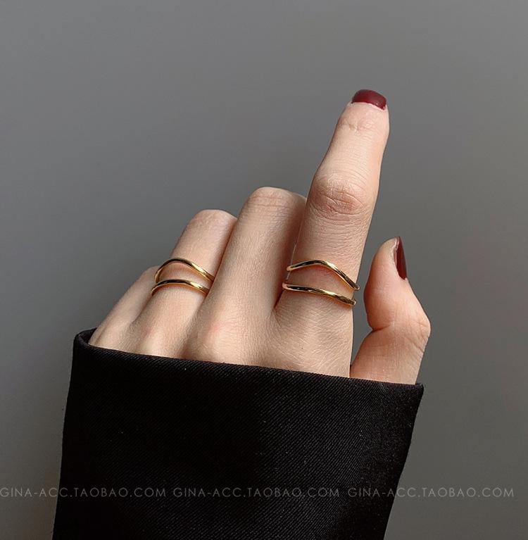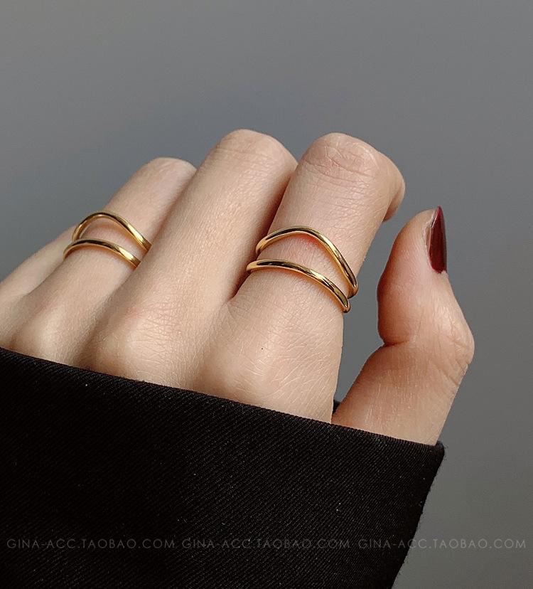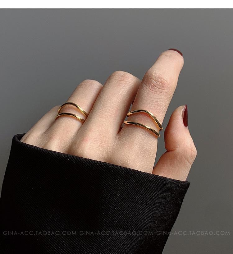 Anillo de dedo índice con línea curva de doble capa en oro y plata esterlina s925, apilado con estilo ins, temperamento minimalista europeo y americano para mujeres.