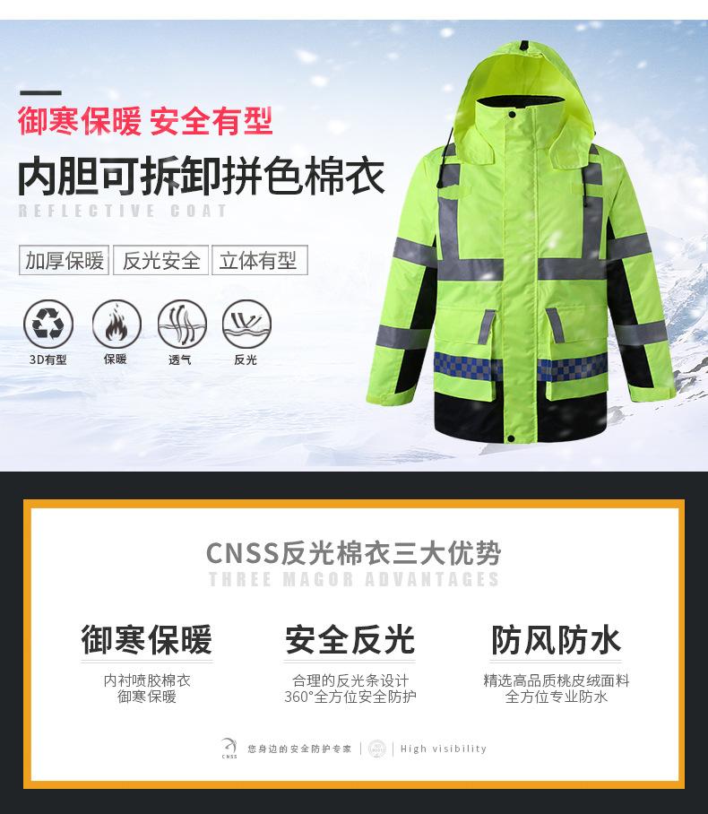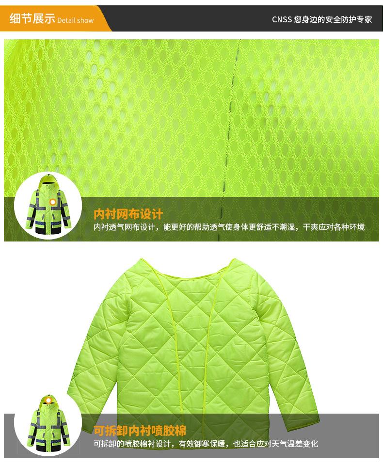 Chaqueta acolchada de algodón, chaqueta acolchada de algodón desmontable, impermeable reflectante, impermeable para tráfico, impermeable para construcción, impermeable para montar, venta al por mayor