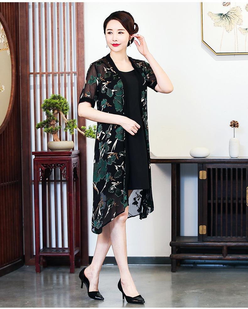 Vestido de seda morera para mujer, verano 2023, nuevo estilo, retro, talla grande, adelgazante, para madres de mediana edad y mayores.
