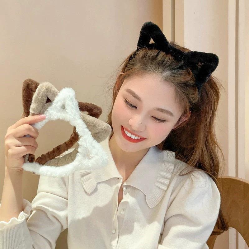 Bonita diadema con orejas de gato para mujer, verano 2023, nueva banda para el cabello antideslizante para lavarse la cara, banda para el cabello, diadema con pinza para el cabello