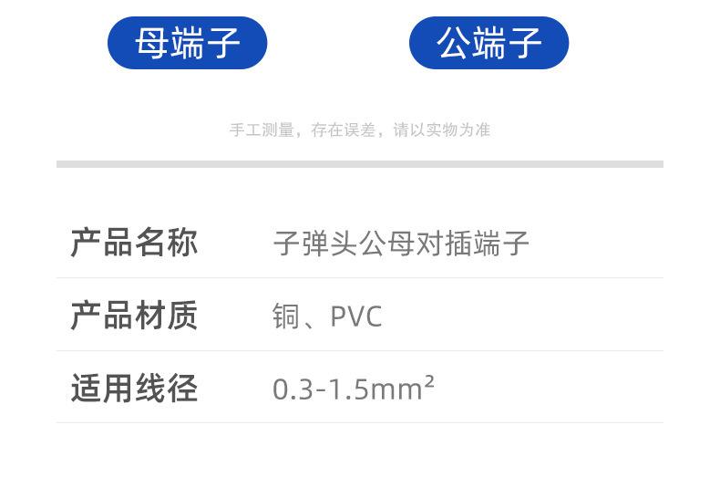 Conector de terminal de cable tipo bala, macho y hembra, enchufable, 120/100/200