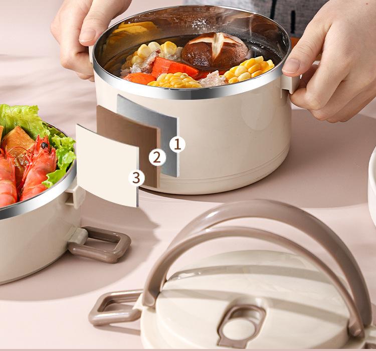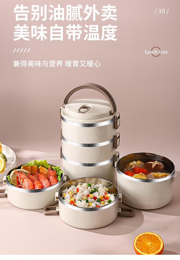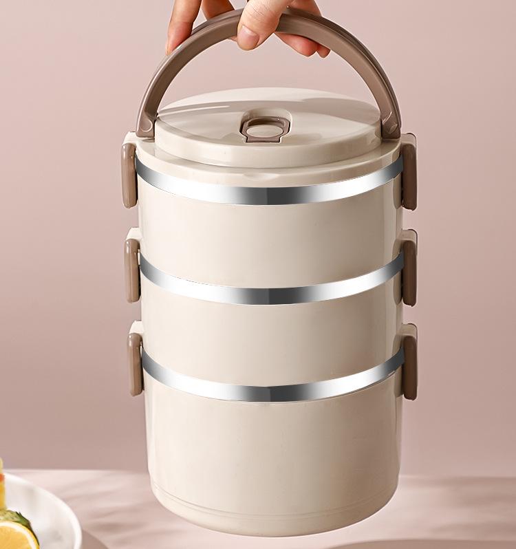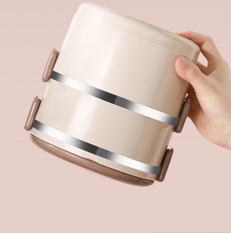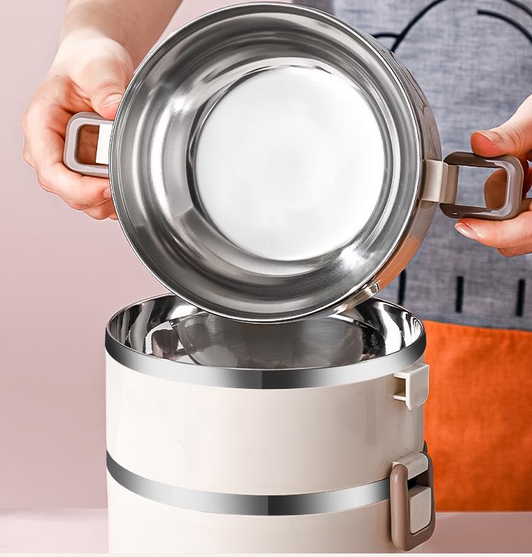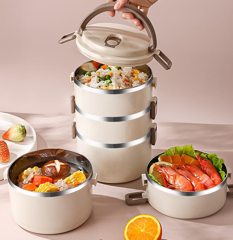 Lonchera multicapa de acero inoxidable, lonchera aislante extragrande, lonchera para adultos y estudiantes, lonchera redonda portátil a prueba de fugas para el hogar