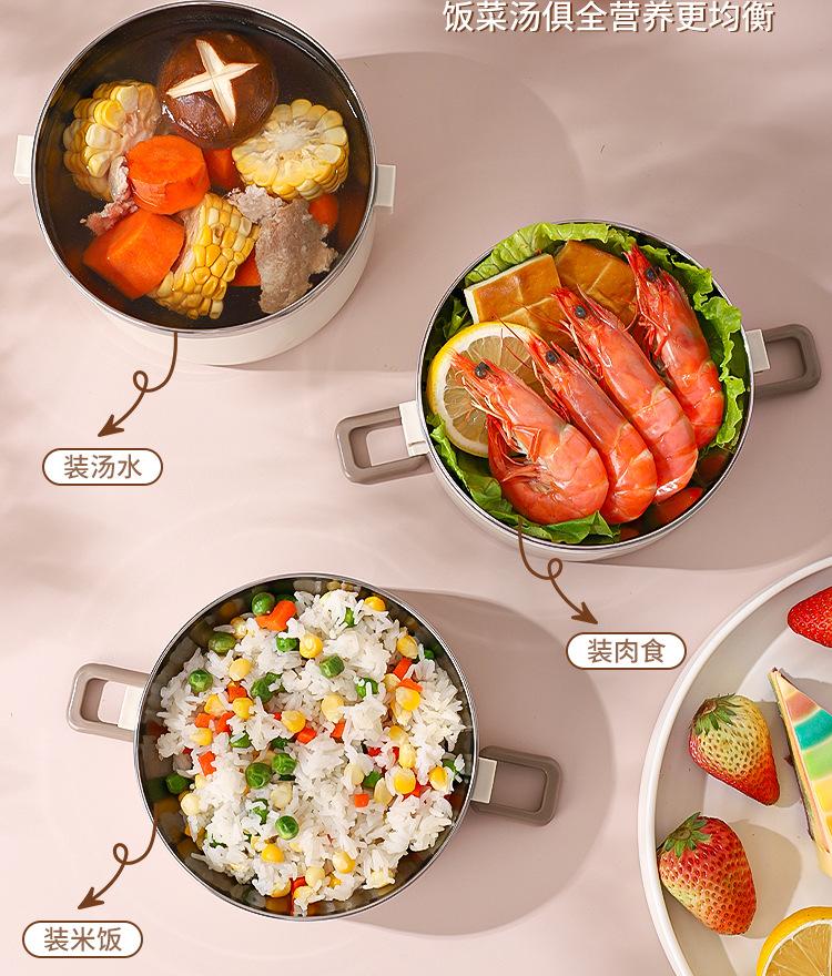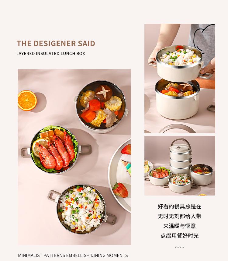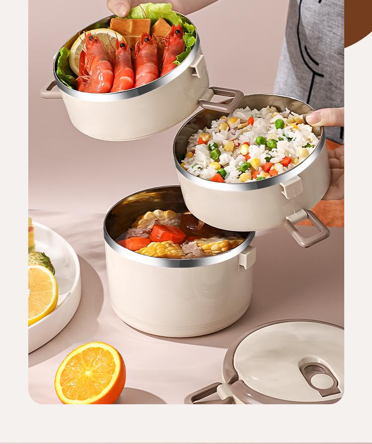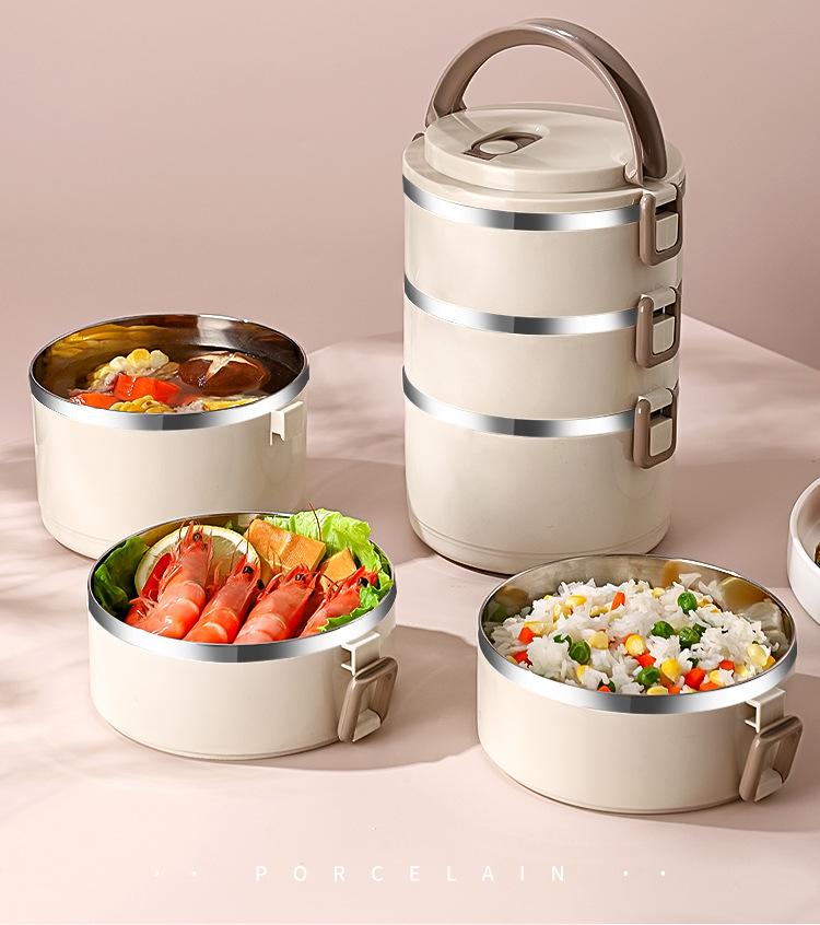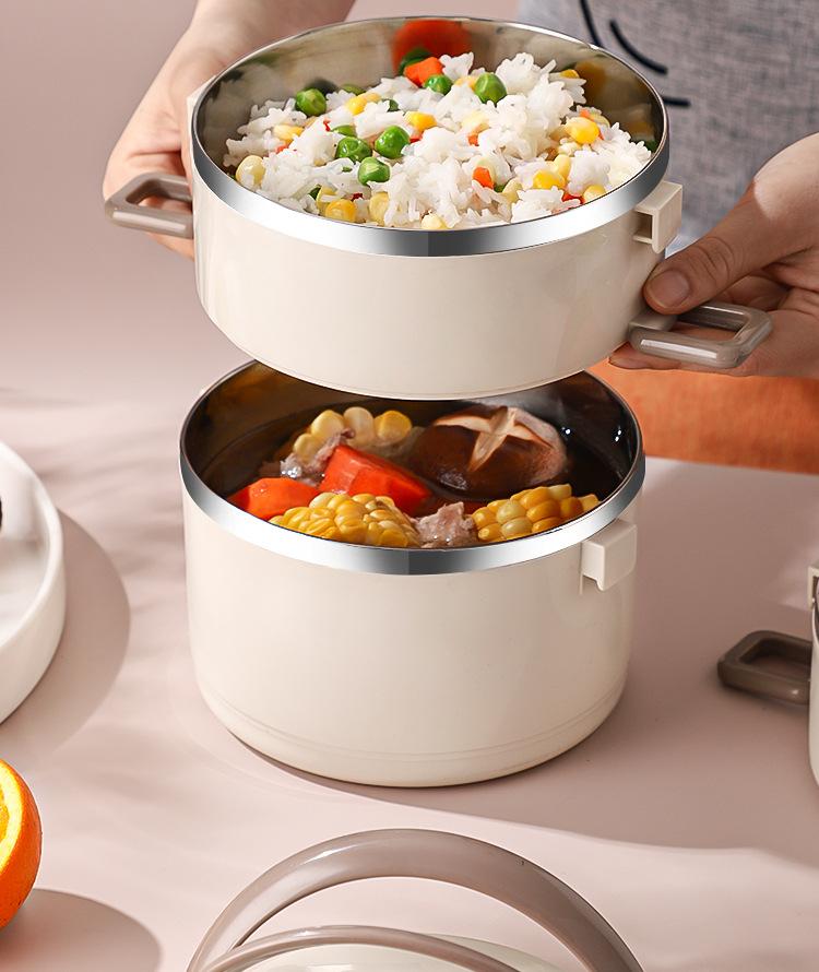 Lonchera multicapa de acero inoxidable, lonchera aislante extragrande, lonchera para adultos y estudiantes, lonchera redonda portátil a prueba de fugas para el hogar