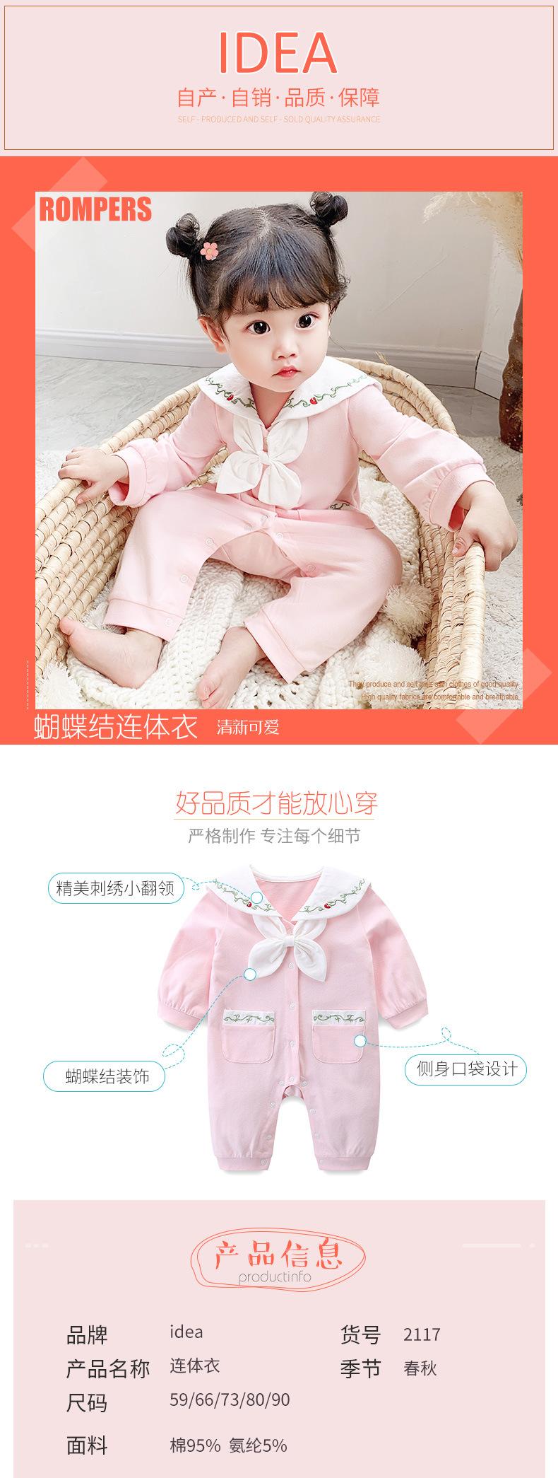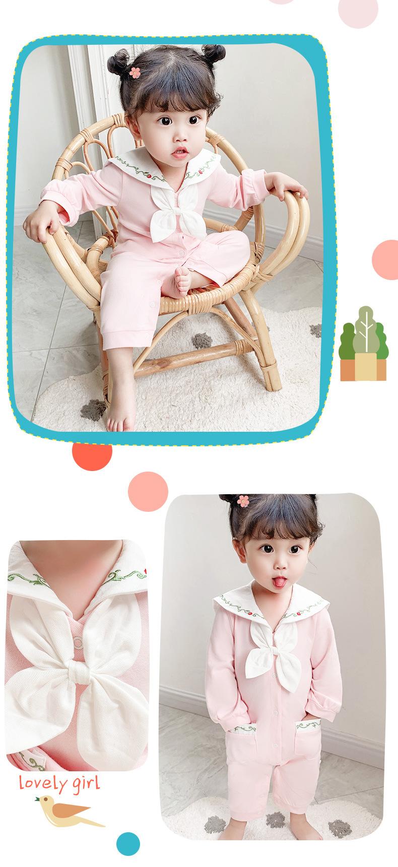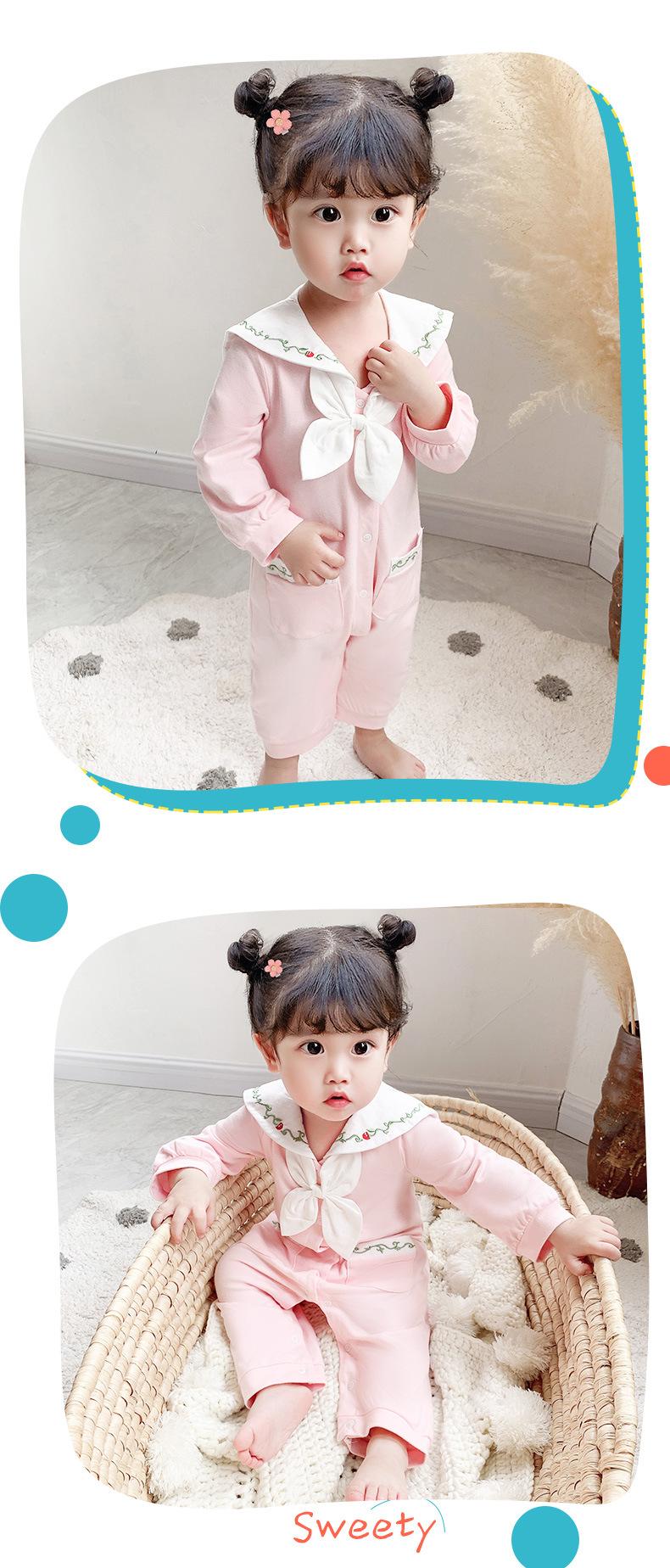 Ropa infantil, primavera y otoño, ropa de bebé, mono de estilo coreano con lazo bordado, ropa de escalada, ropa de tesoro para mujer 2117