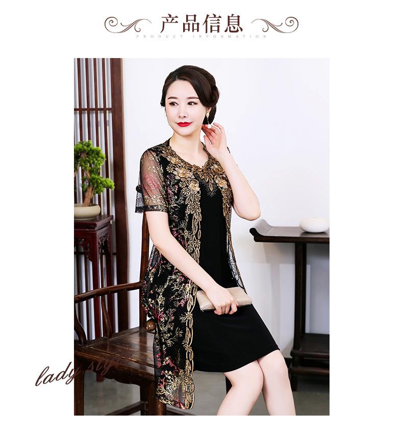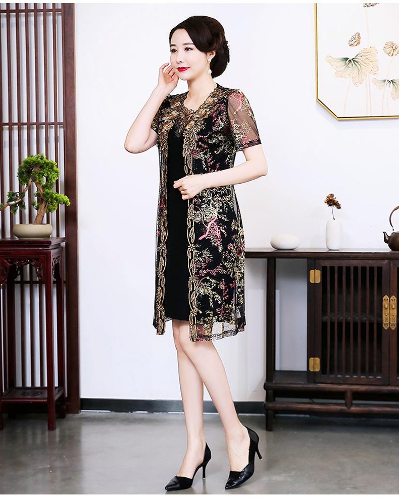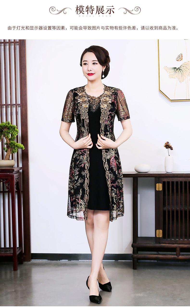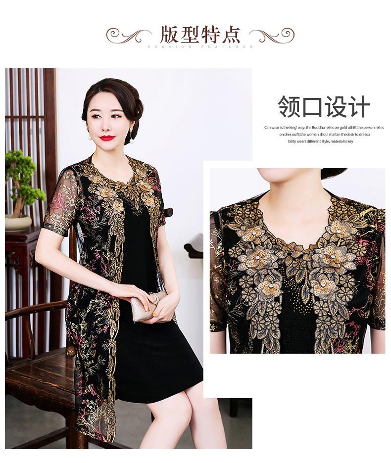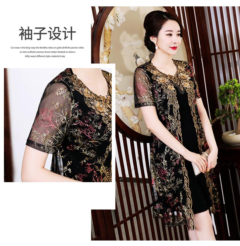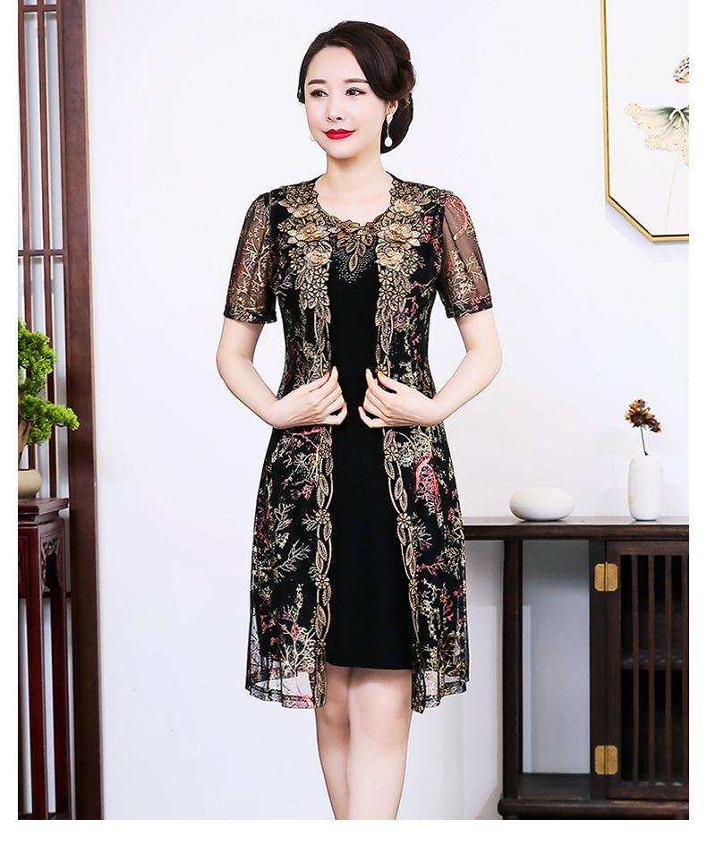 Traje de moda de verano 2023 para mujer, talla grande, vestido de dos piezas de manga corta y longitud media para madre