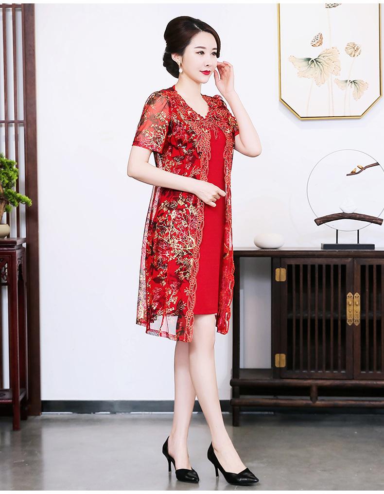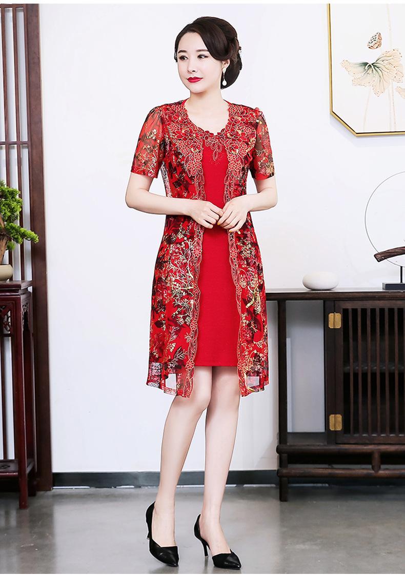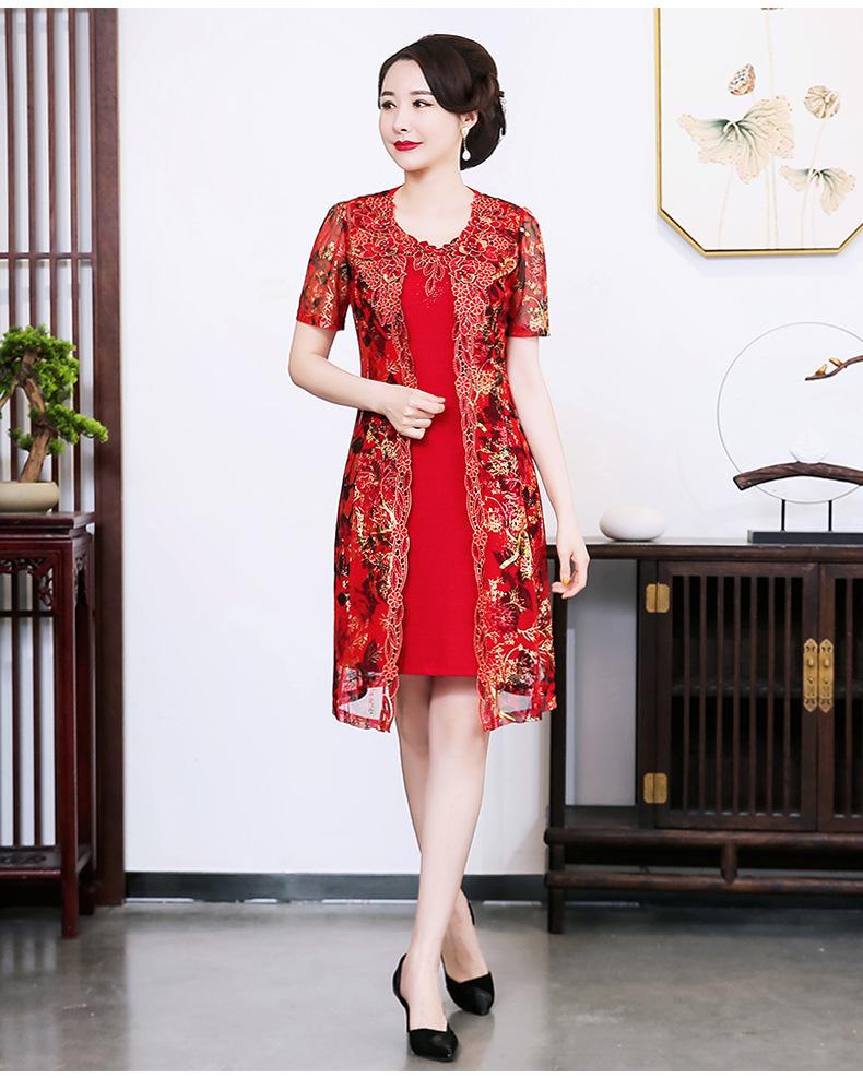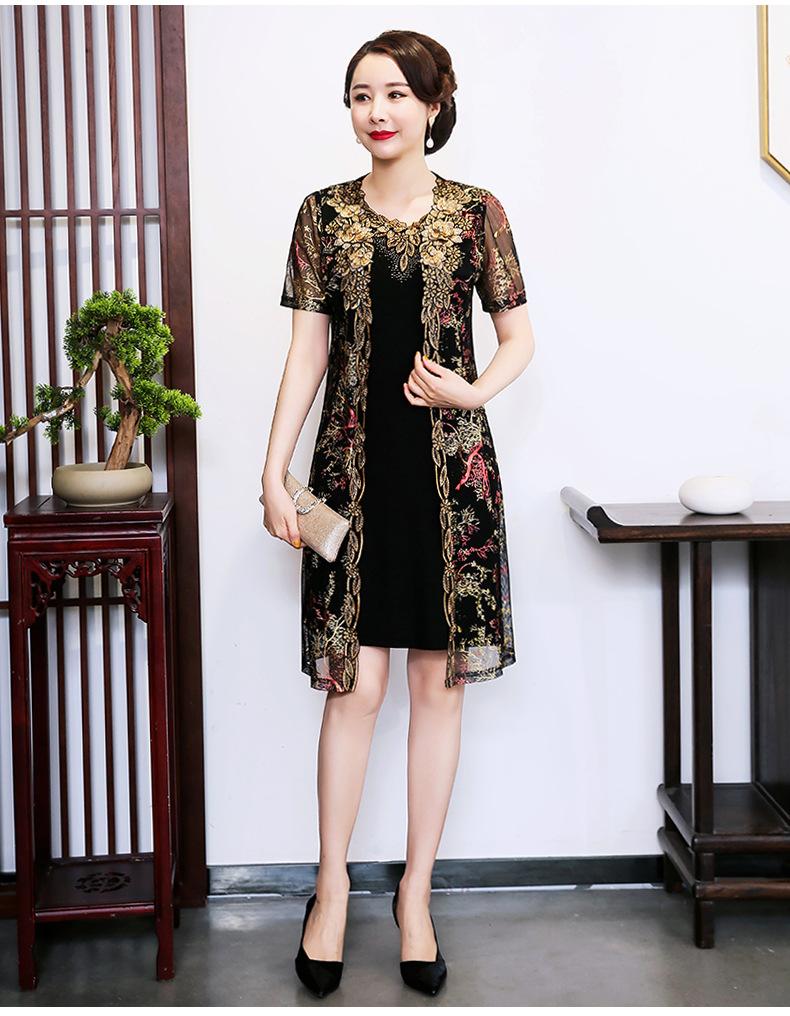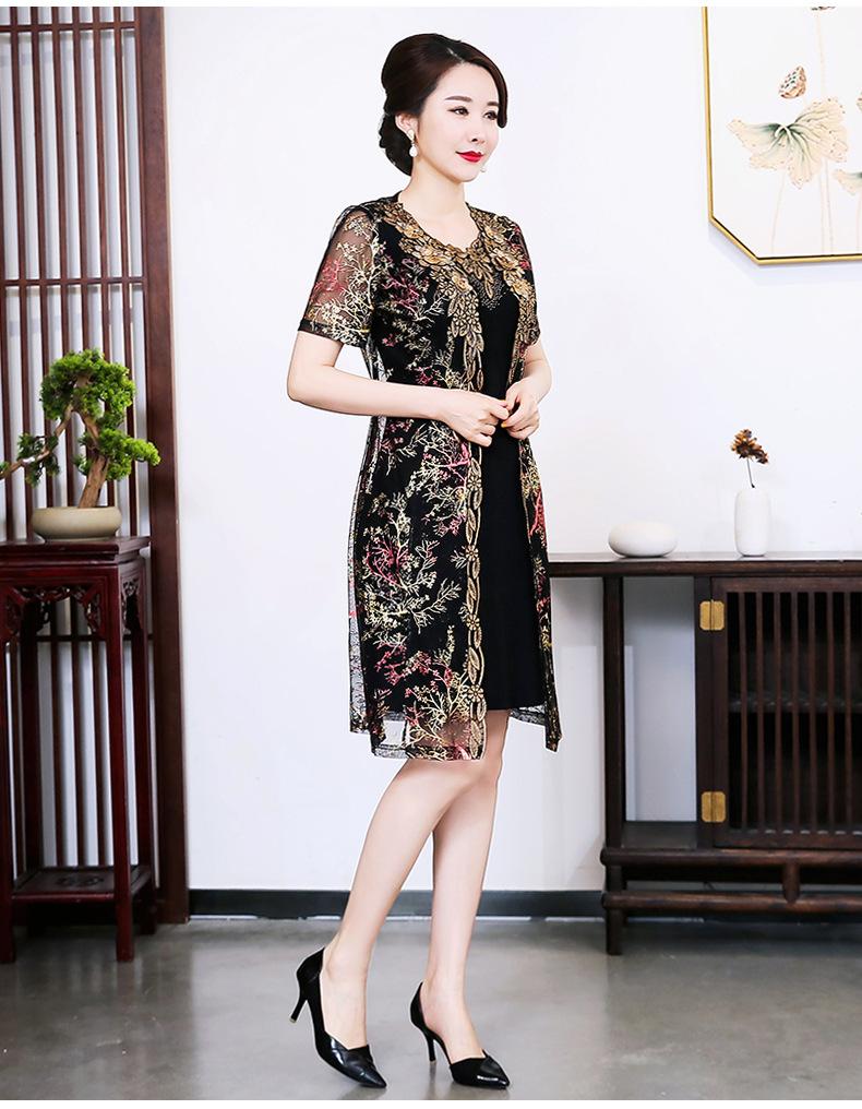 Traje de moda de verano 2023 para mujer, talla grande, vestido de dos piezas de manga corta y longitud media para madre