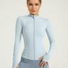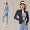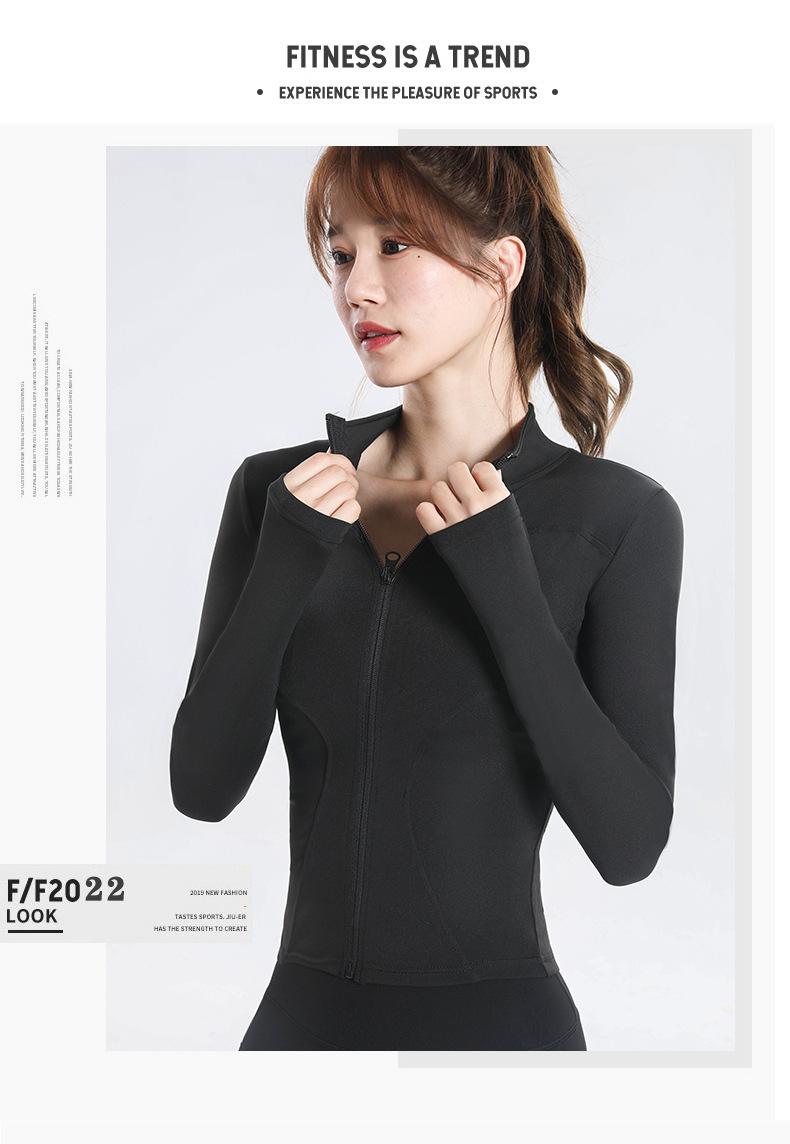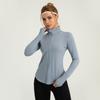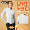 Chaqueta deportiva para exteriores desnuda con protección solar para mujer, ajustada, de secado rápido, transpirable, con cuello alto, para correr, yoga, fitness