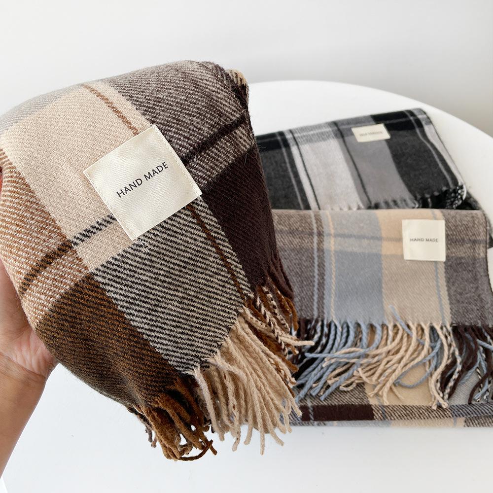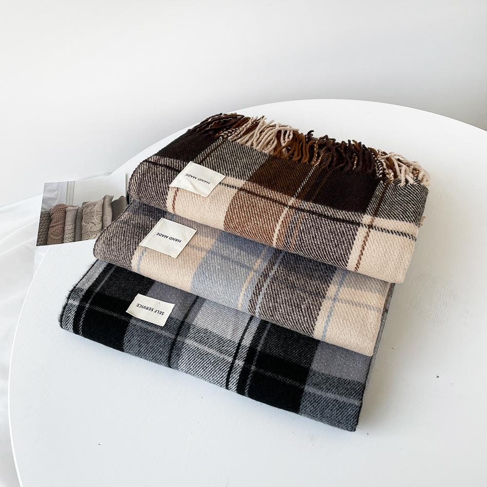 Bufanda a cuadros de otoño e invierno para mujer, bufanda de cachemira, estilo británico simple, chal cálido de invierno que combina con todo, venta al por mayor