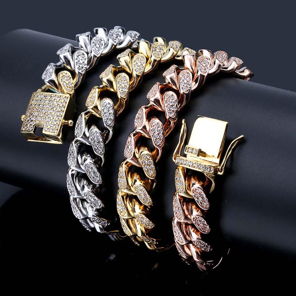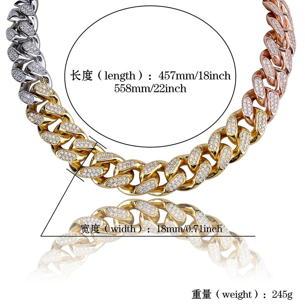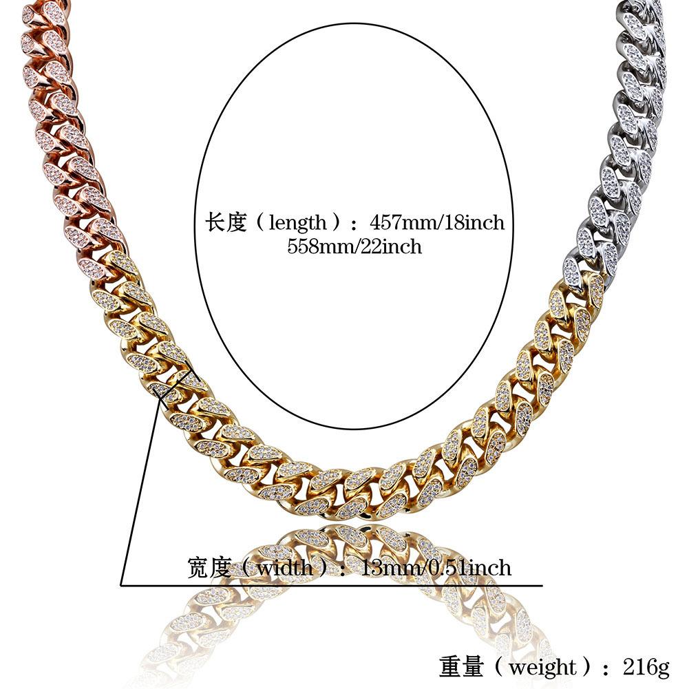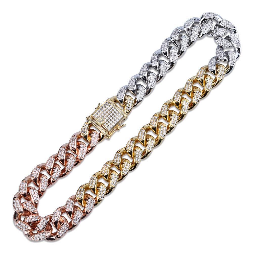 Cadena cubana personalizada arcoíris tricolor de circonio completo