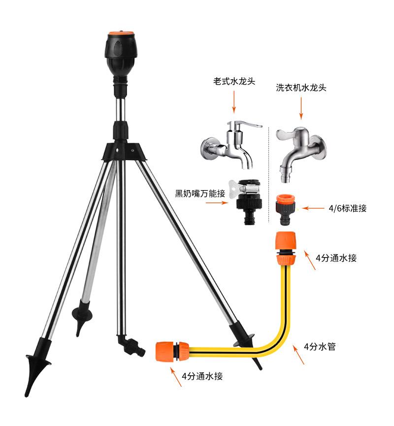 Aspersor de riego de jardín, aspersor giratorio automático, aspersor de agua de 360 grados, aspersor de trípode para paisajismo