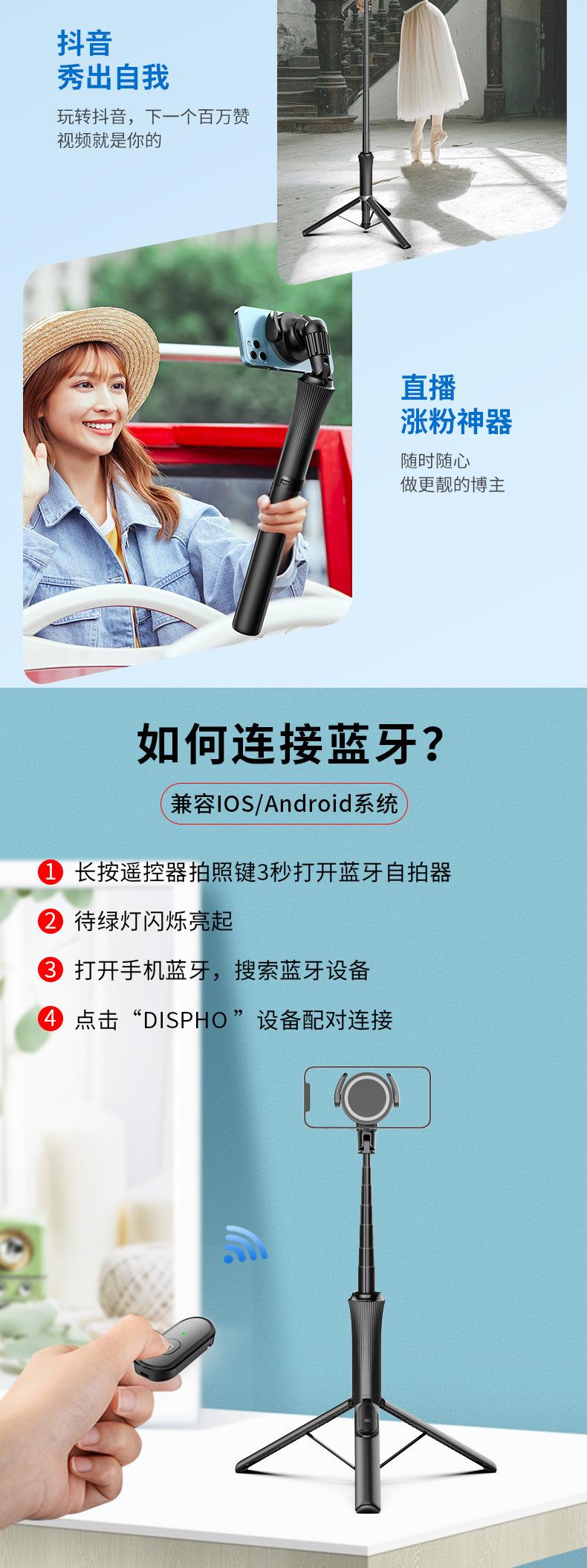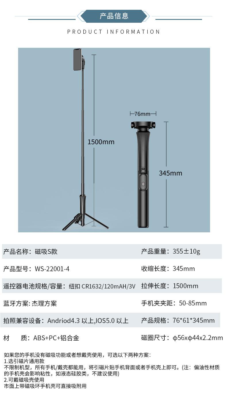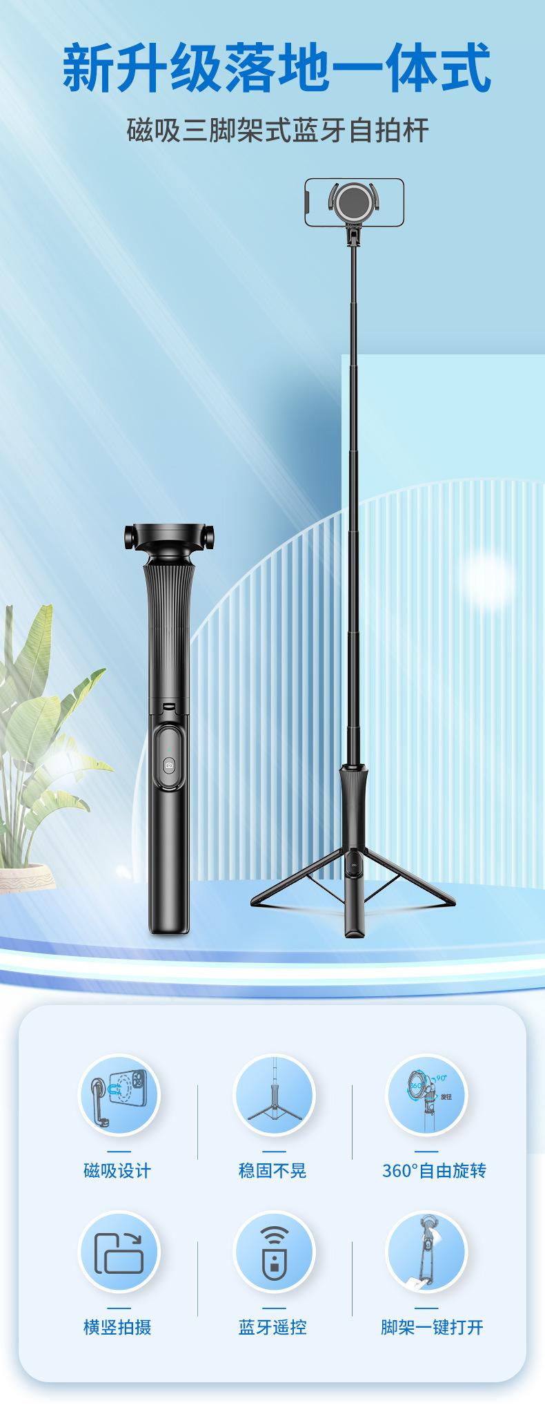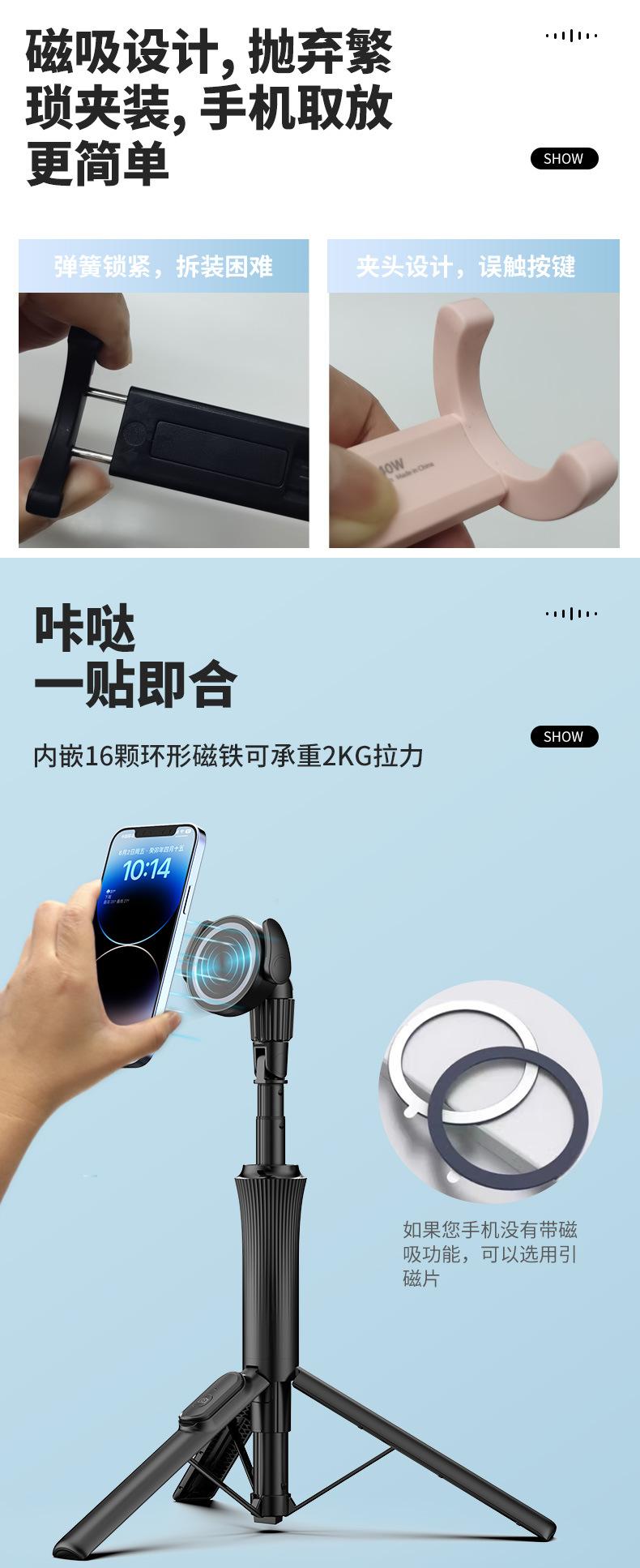 Palo de selfie para teléfono móvil, soporte magnético en vivo, trípode de fotos con Bluetooth, mini varilla telescópica para disparo, artefacto al por mayor