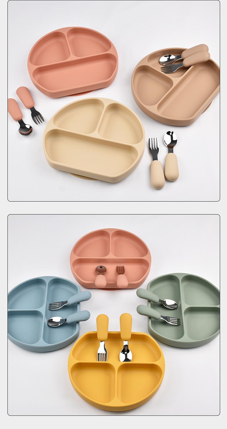 Vajilla de Silicona Personalizada para Niños Tazón con Ventosa Plato para Aprender a Comer Cuchara Set Tazón para Comida de Bebé Tenedor Cuchara
