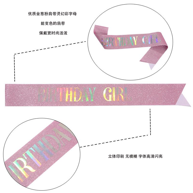 Cinturón de etiqueta con corona de cristal de moda europea y americana, tocado de cumpleaños, corona, cinta de cumpleaños para niña, venta al por mayor | Nuevo conjunto de diadema con corona de letras de cristal europeas y americanas para cumpleañeras de aleación de moda para cumpleañeras | Diadema con corona de cumpleaños rosa de moda europea y americana, correa para el hombro, complemento de cumpleaños, tocado de cristal para fiesta de cuatro piezas, cinturón | ||