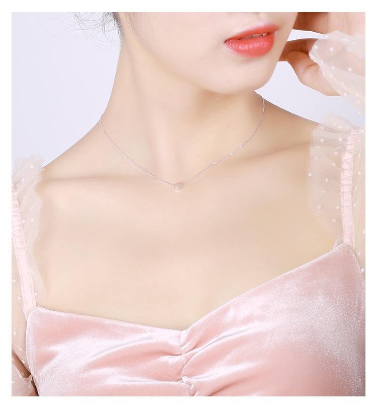 Collar en forma de corazón para mujer, plata de ley 925, cadena de línea simple, pequeña, fresca y elegante, cadena de clavícula estilo Mori