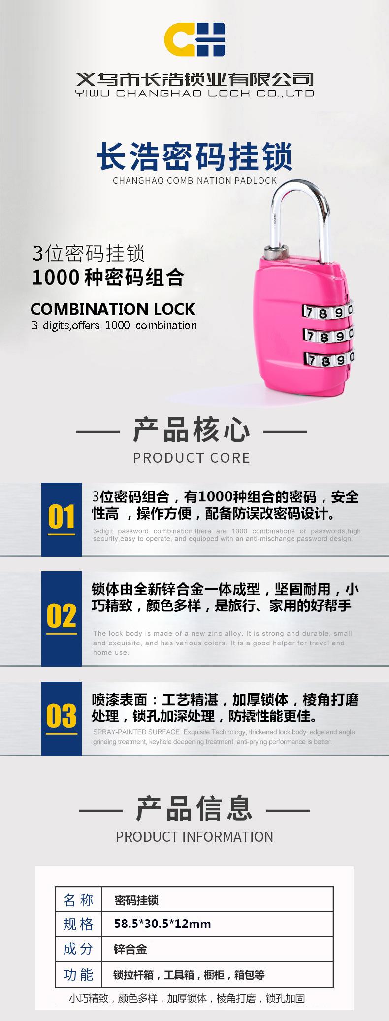 Fábrica] Código de 3 dígitos con cerradura de gancho de hierro viga de bloqueo gabinete carrito caja cerradura de contraseña camping viaje candado antirrobo