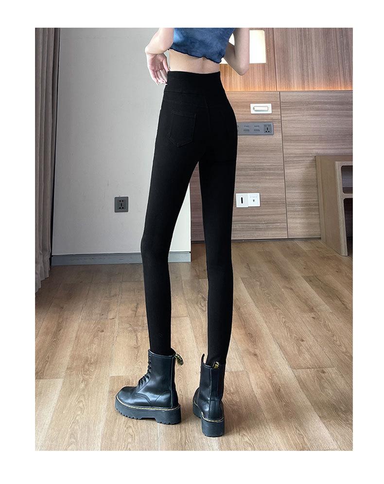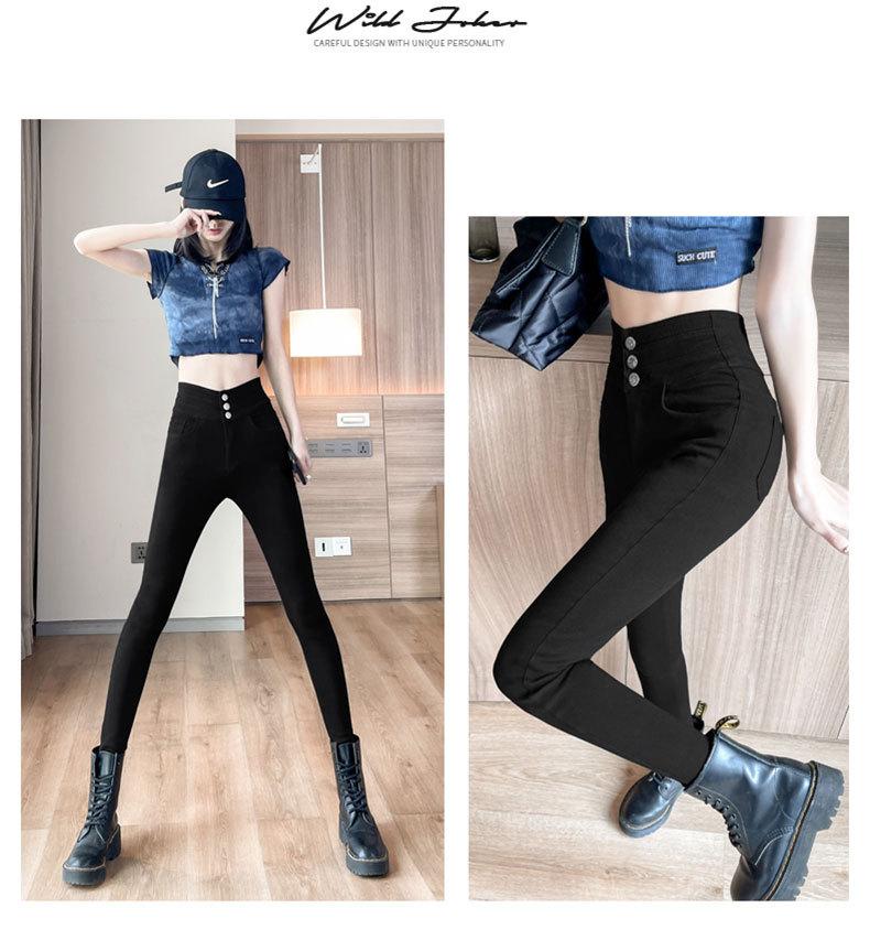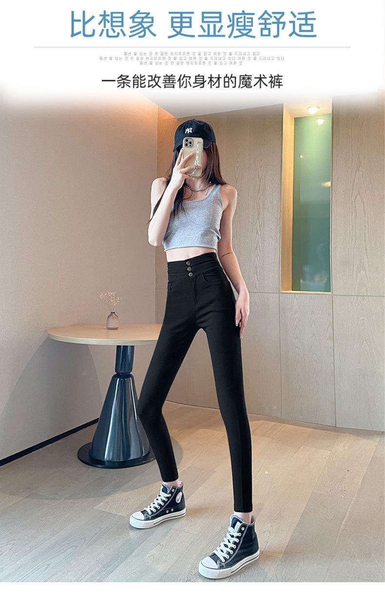 Leggings pantalones de cintura alta negros ajustados elásticos para primavera y otoño, pantalones negros pequeños con lápiz mágico