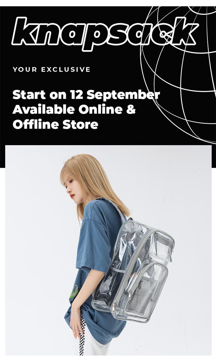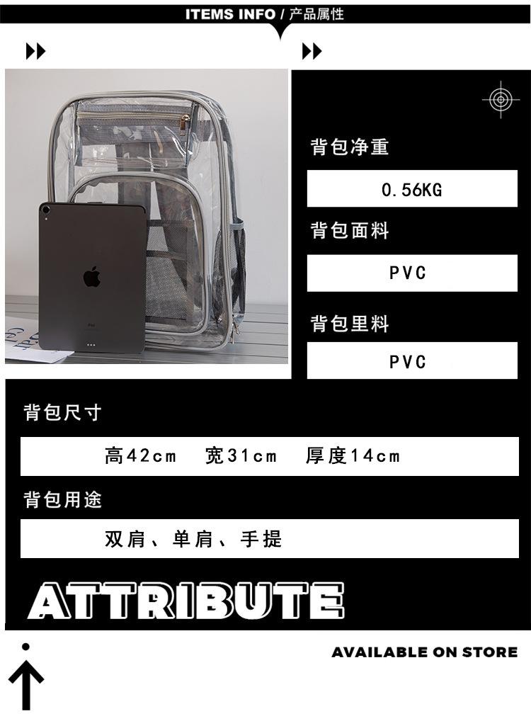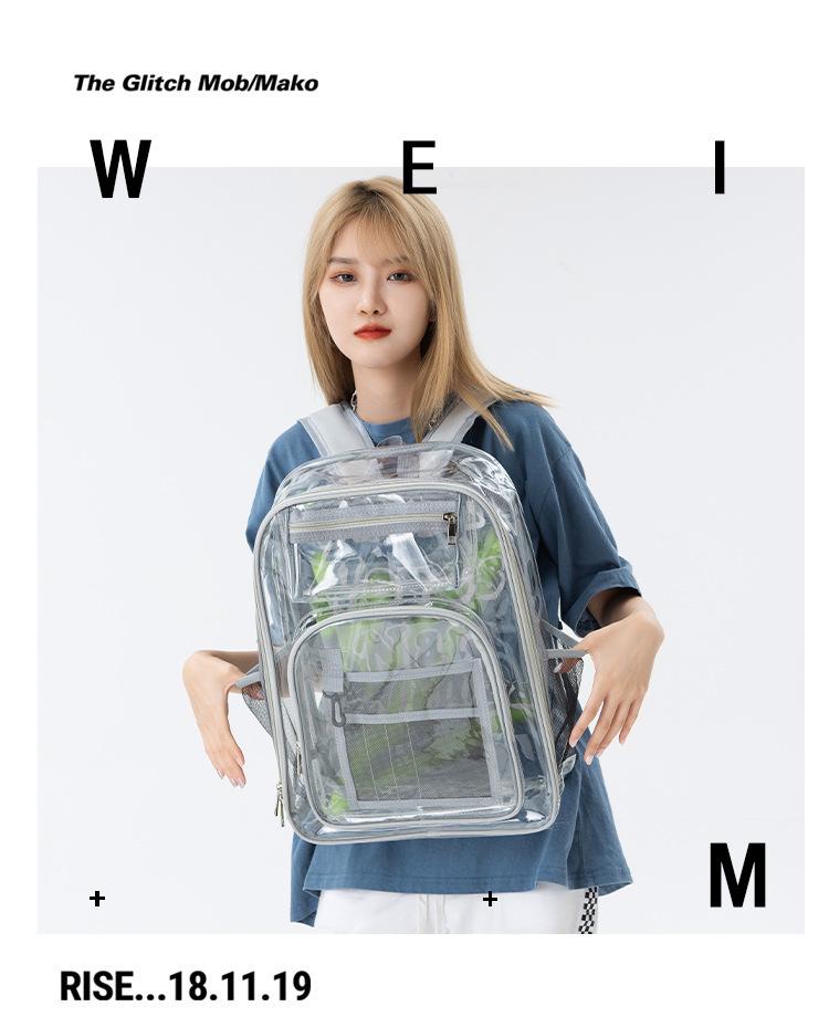 Mochila transparente de PVC portátil personalizada de fábrica transfronteriza, nueva, de moda, para hombres y mujeres.