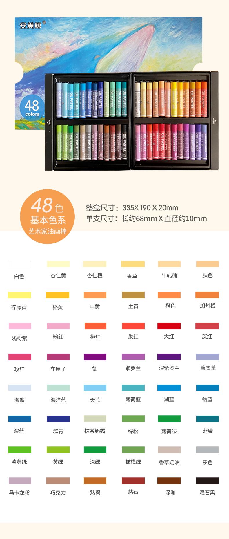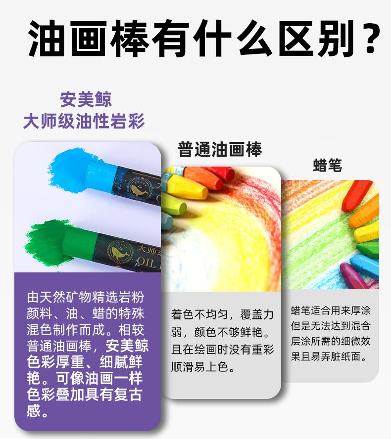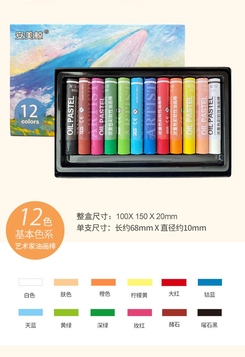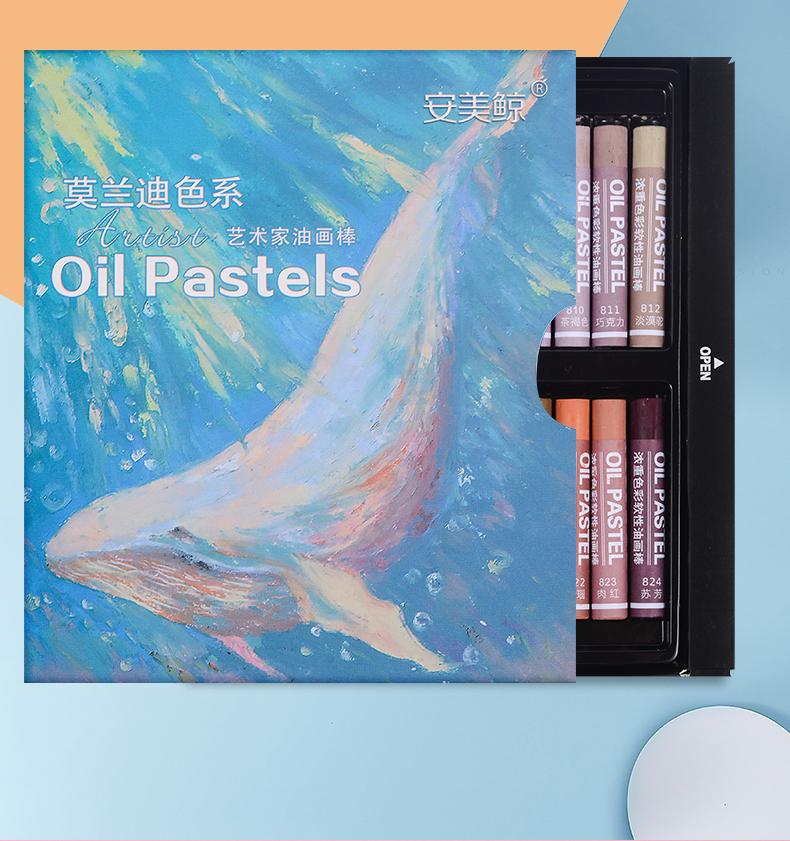 Barra de pintura al óleo de colores intensos de ballena Anmei, venta al por mayor, suave, 24 colores, 36 colores, 48 macarrones, Morandi Master Grade Oily Rock color