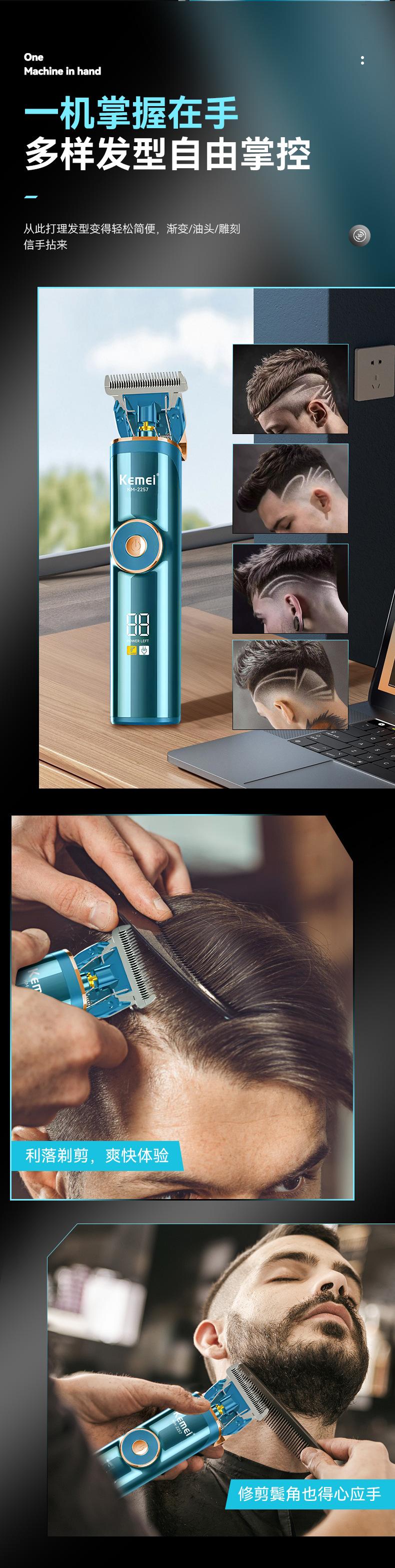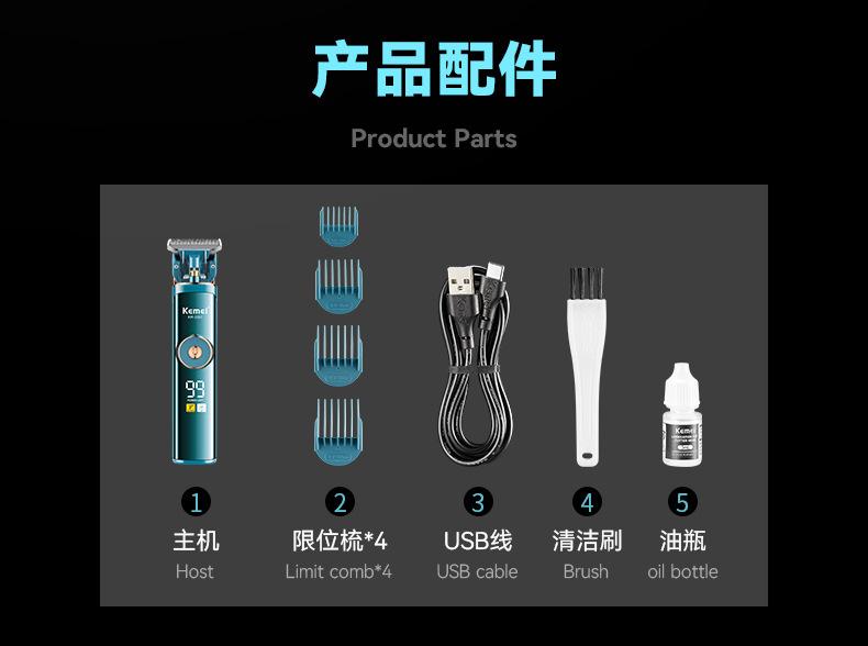 Cortadora de pelo eléctrica hueca con pantalla digital LCD transfronteriza Kemei, mini recortadora, cortadora de pelo eléctrica profesional
