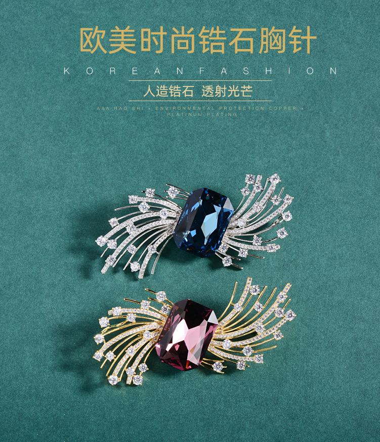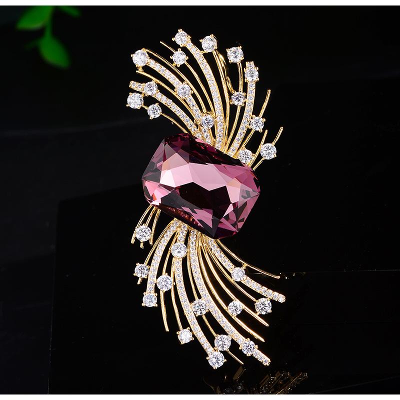 Broche personalizado de lujo ligero europeo y americano para mujer, circonita micro incrustada, exquisito ramillete para ropa, abrigo, insignia, pin, accesorios