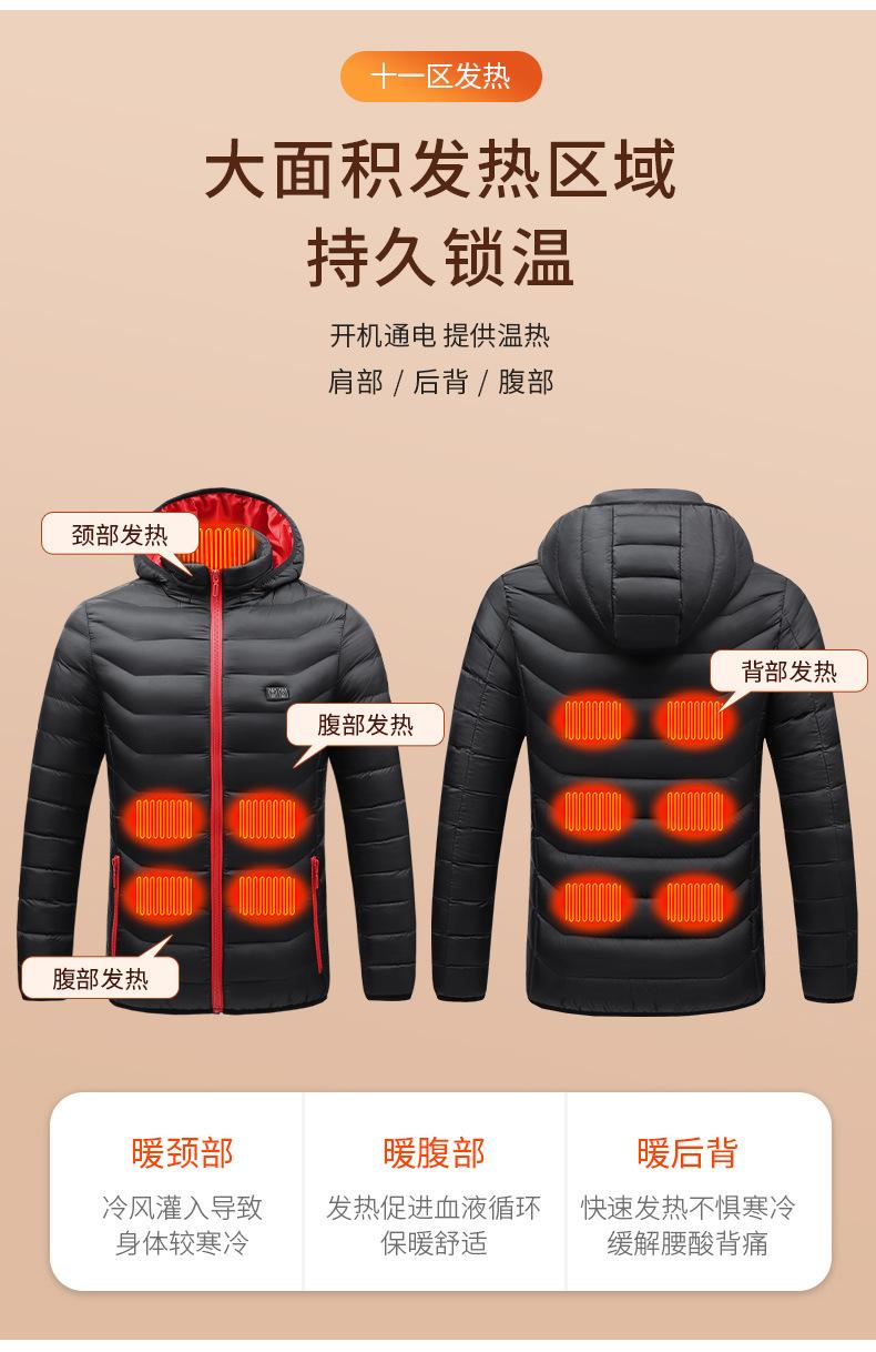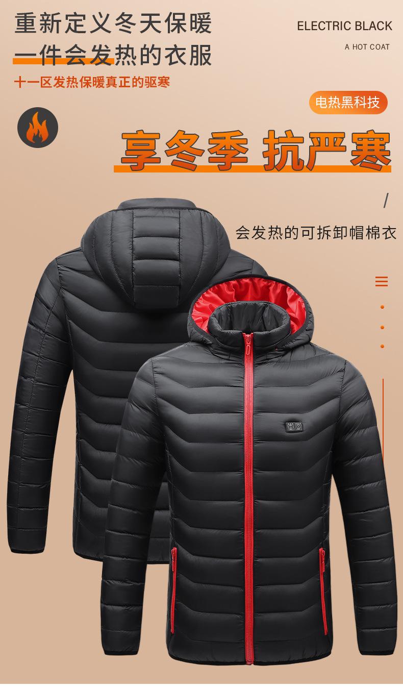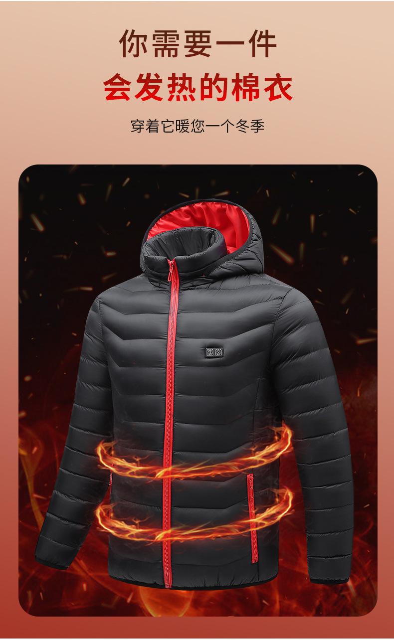 Chaqueta acolchada de algodón con calefacción transfronteriza, chaqueta acolchada de algodón con calefacción inteligente con capucha, chaqueta acolchada de algodón para exteriores para mujer, cálida chaqueta acolchada de algodón con calefacción eléctrica de cuerpo completo y temperatura constante.