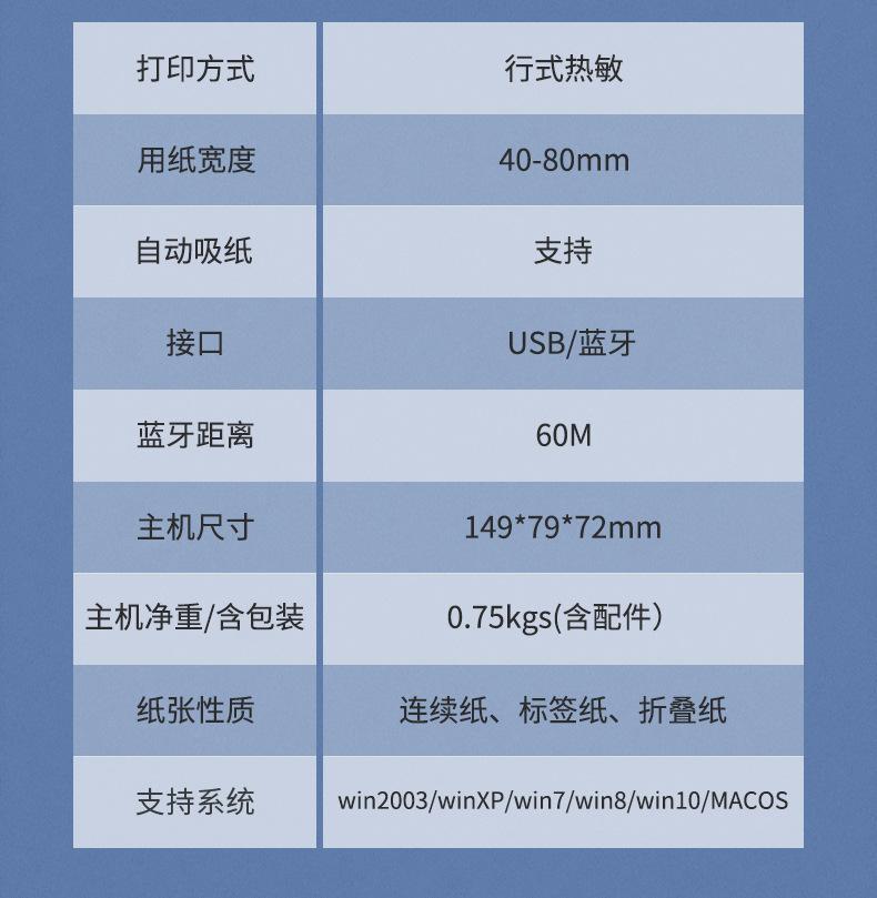 401H USB interface (printing 40-80mm wide), 401H USB Bluetooth (print 40-80mm wide), 408h usb computer connect...