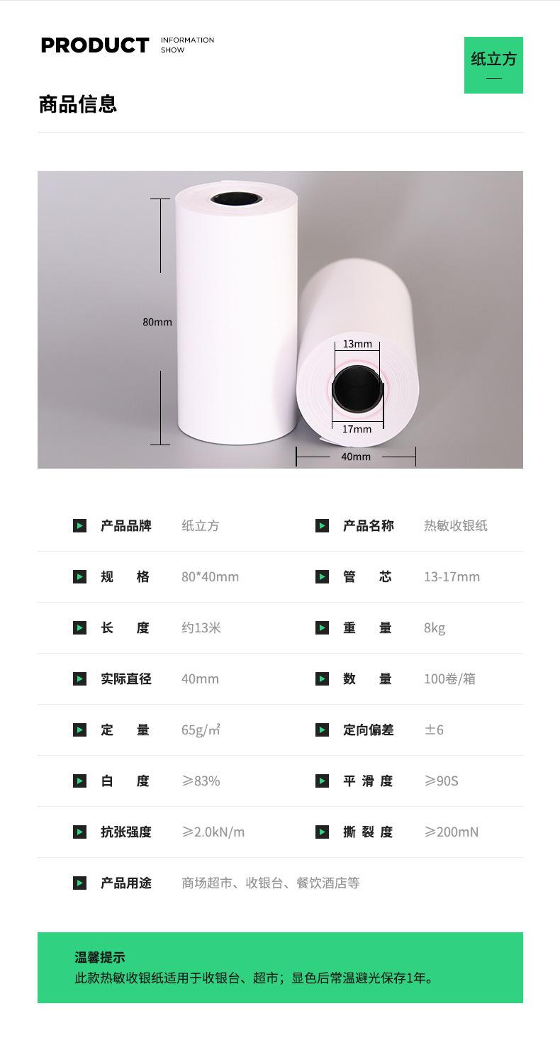 Papel térmico para caja registradora de 80 x 40, papel para impresión de catering de 80 mm, papel para recibos de supermercado, papel individual para comida para llevar, papel para caja registradora de 80 x 40