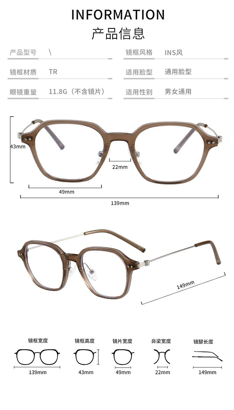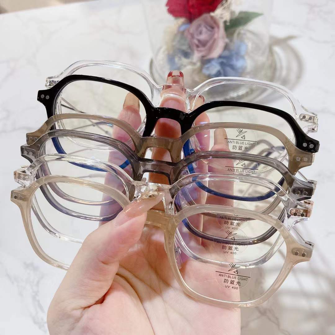 TR9839, gran marca, mismo marco cuadrado pequeño, decoración de remaches, acabado anti-luz azul, marco de gafas de luz plana para hombres y mujeres con almohadillas nasales