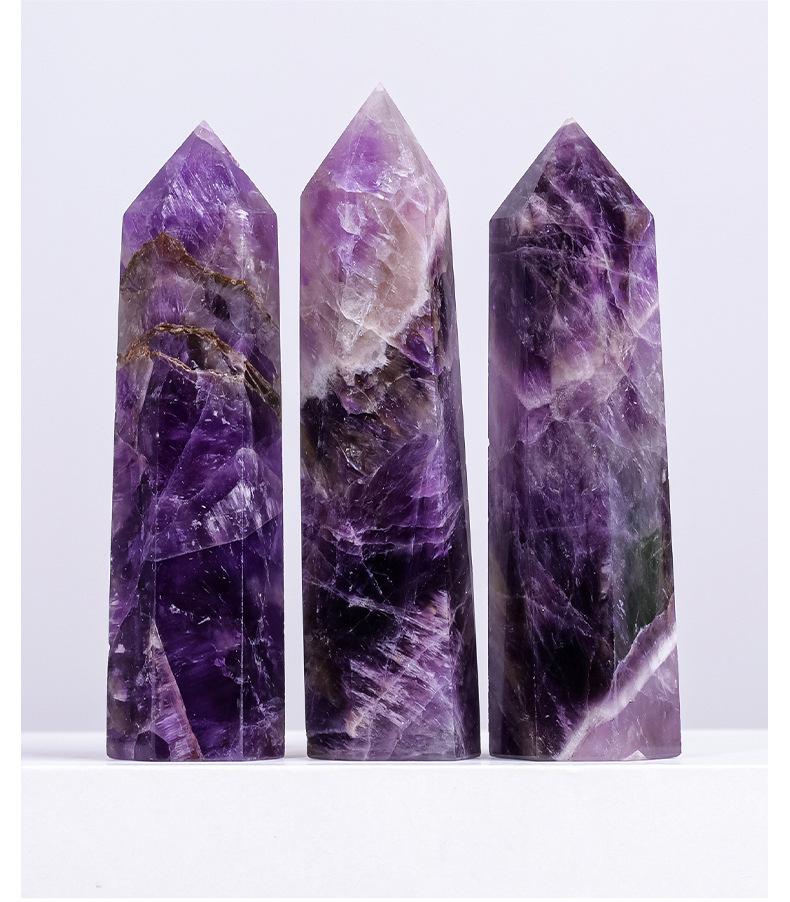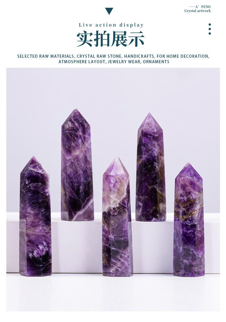 Amatista de ensueño natural al por mayor, prisma hexagonal, amatista de una sola punta, piedra cruda de amatista, adornos de columna de cristal pulido