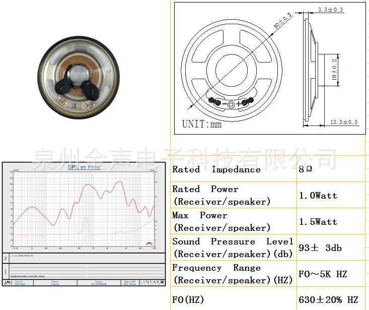 Altavoz tweeter redondo resistente al agua de 1 W y 50 mm de diámetro, fabricado en Quanzhou AEC.