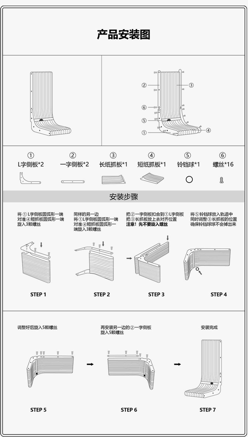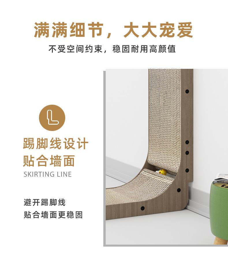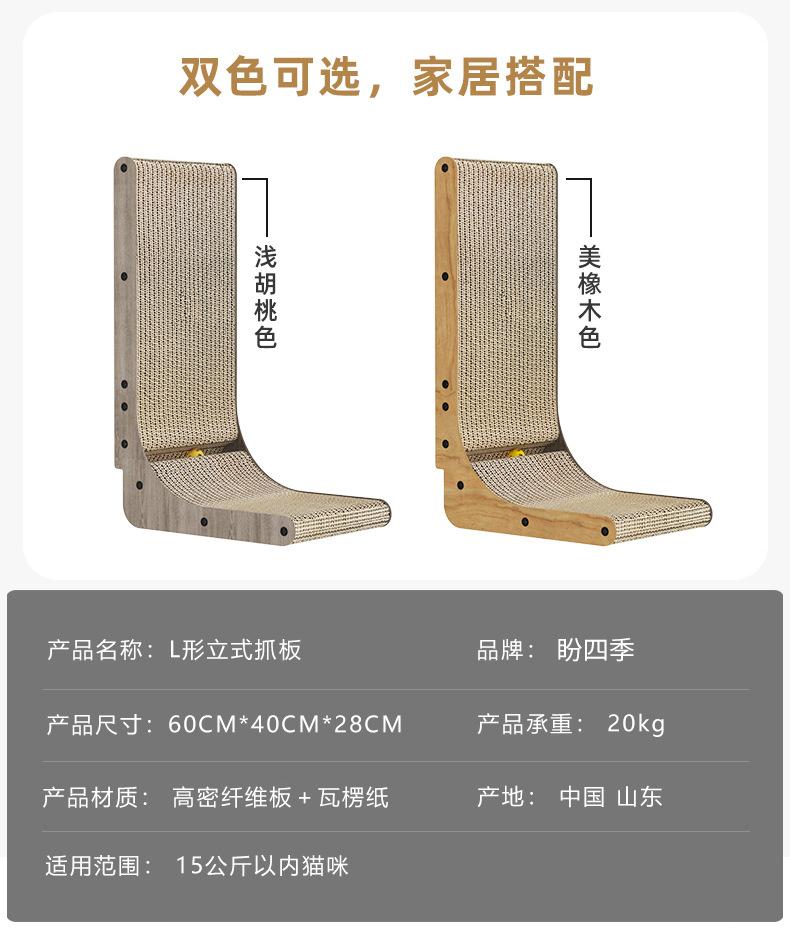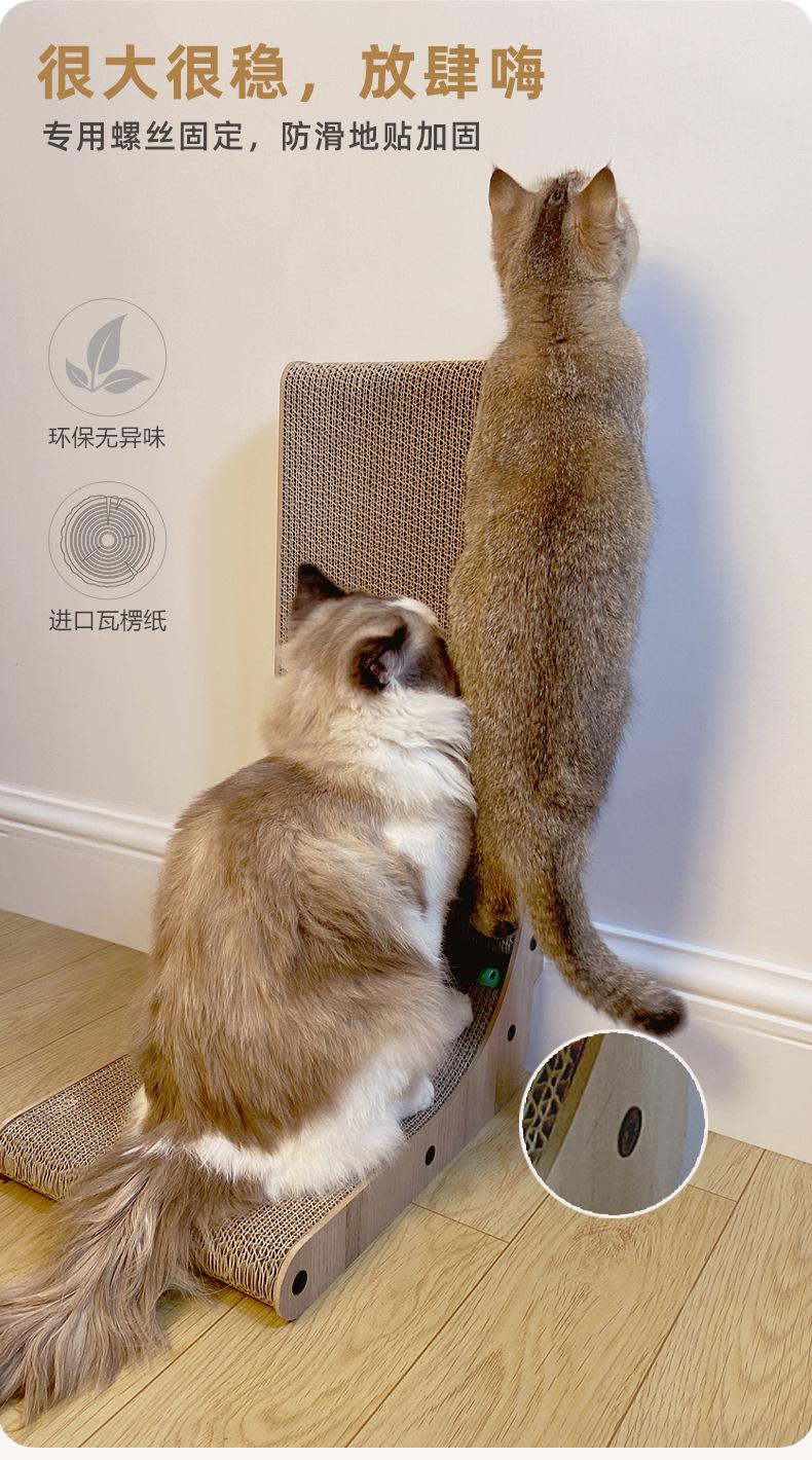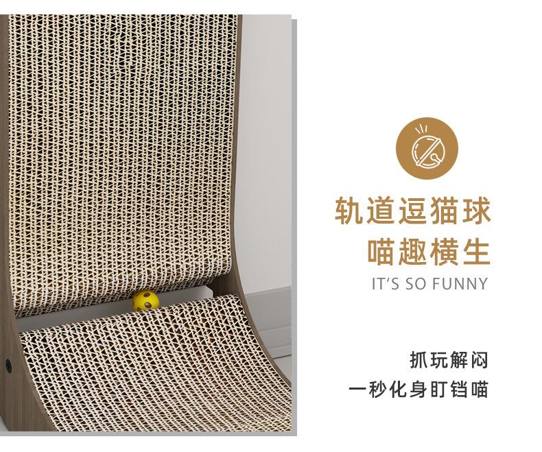 Rascador vertical para gatos de cartón corrugado personalizado con juguete para gatos de bola con campana en forma de L