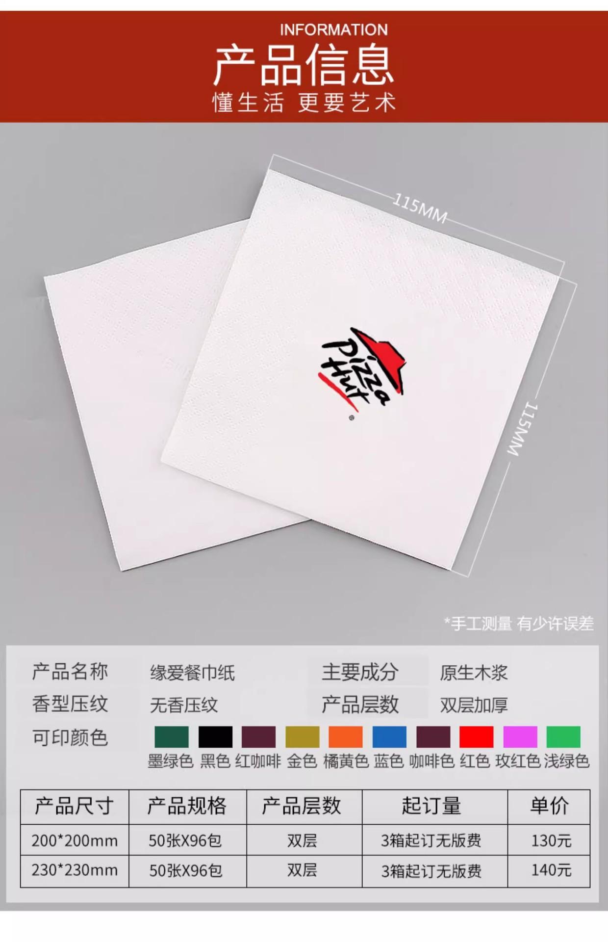 Toallas de papel personalizadas de dos colores con logotipo imprimible, servilletas cuadradas personalizadas para comida para llevar en hoteles y restaurantes.