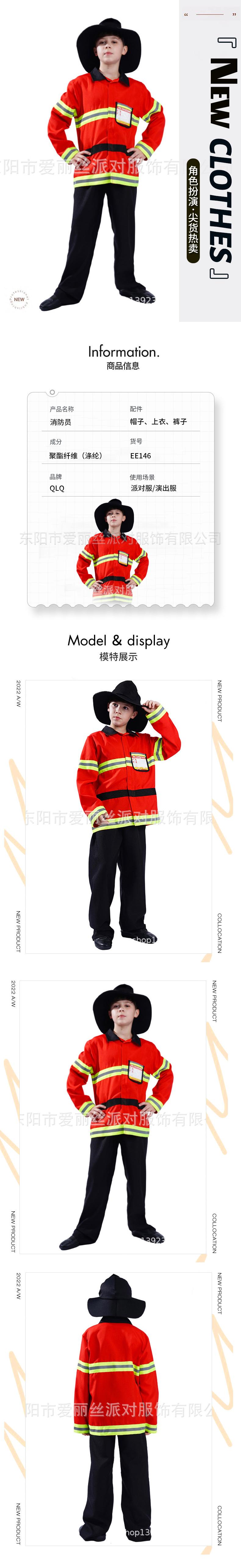 Disfraz de Fiesta de Actuación de Bombero para Niño Pequeño Halloween Niños Cosplay Escenario Disfraz de Actuación de Bombero