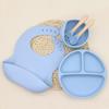 Plato de silicona con ventosa para niños con diseño de fresa transfronterizo, juego de cuencos integrados, vajilla de silicona para bebés, plato con compartimentos de dibujos animados
