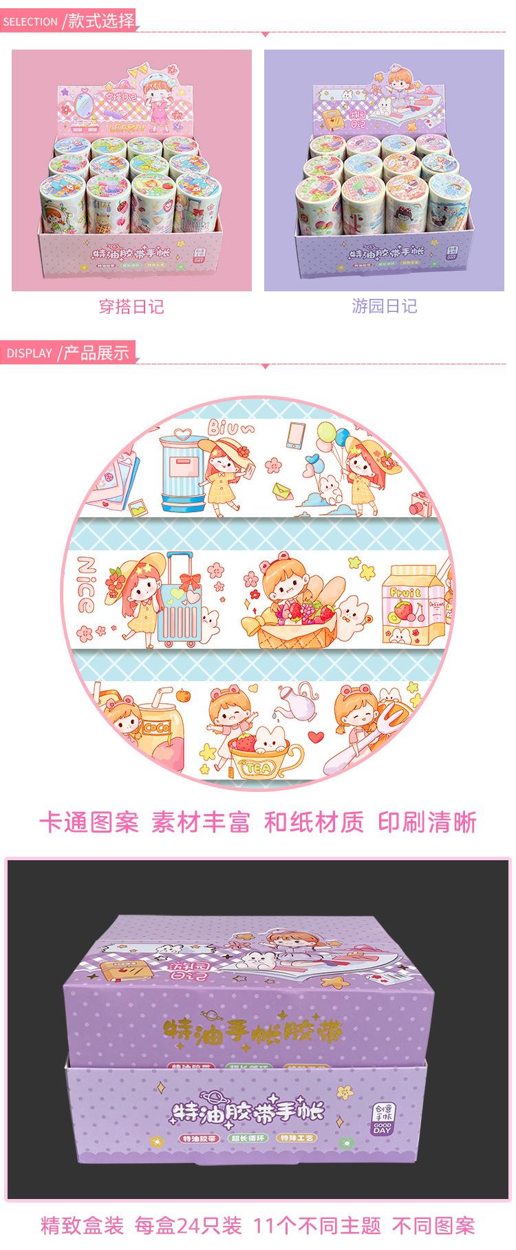 Cinta de diario de aceite especial con personajes de dibujos animados y cinta de papel para decoración de collage de bricolaje, material de paisaje. Cinta de diario.