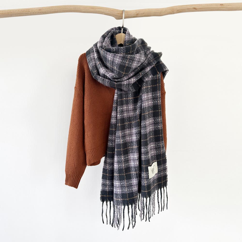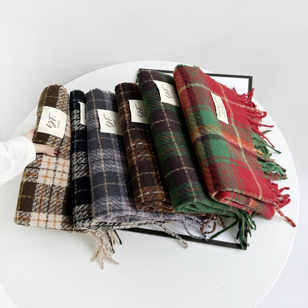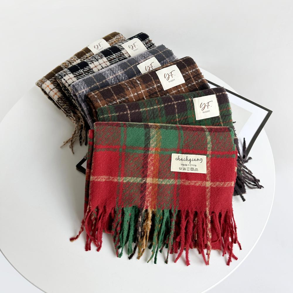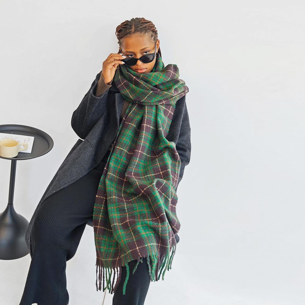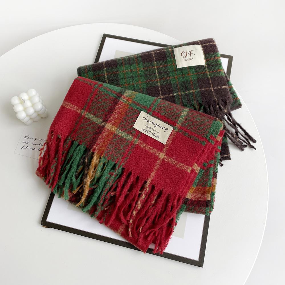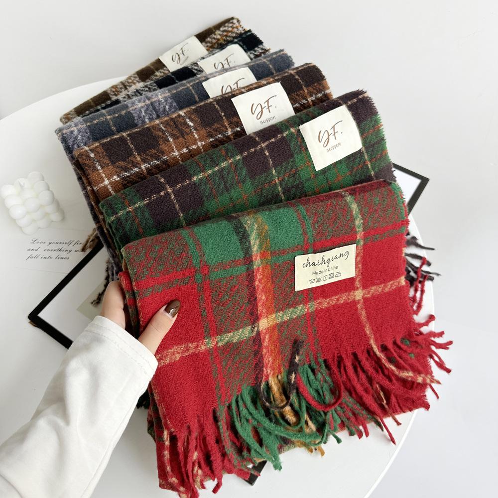 Bufanda de cachemira de imitación para mujer, otoño e invierno 2023, color a cuadros, gruesa, cálida, al por mayor, estilo Joker