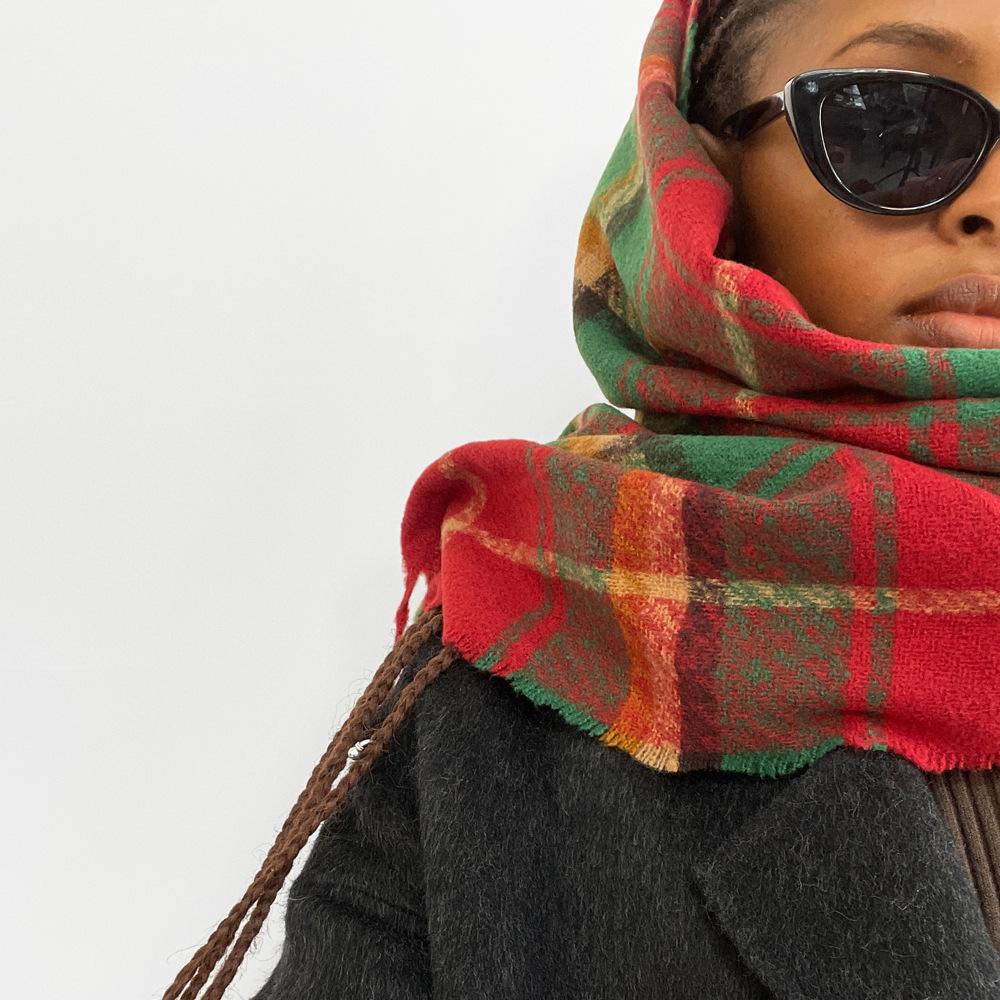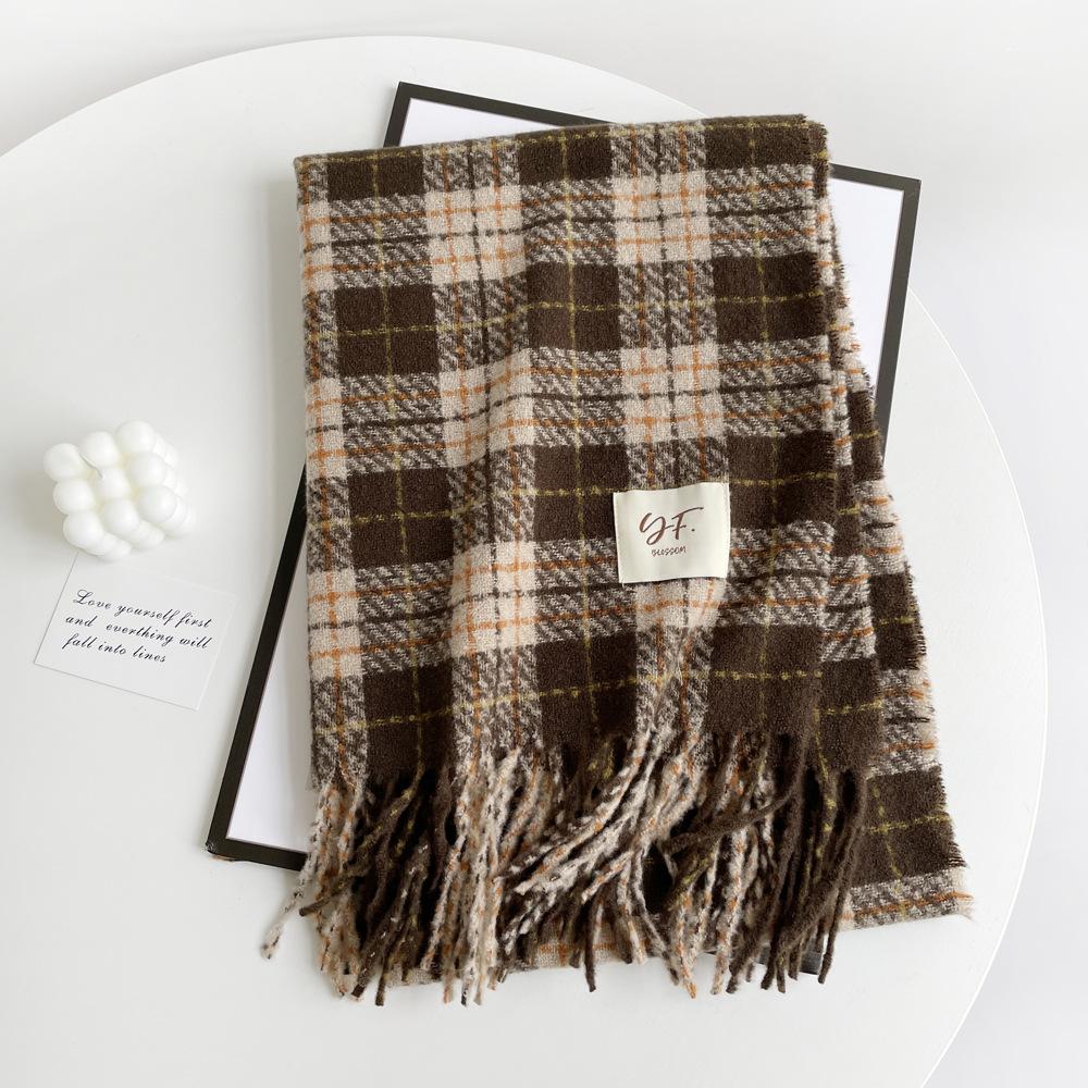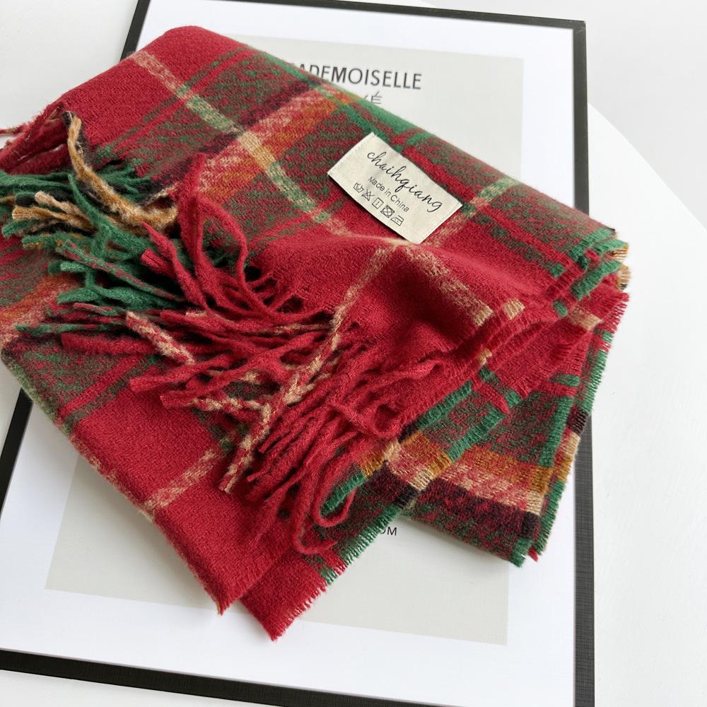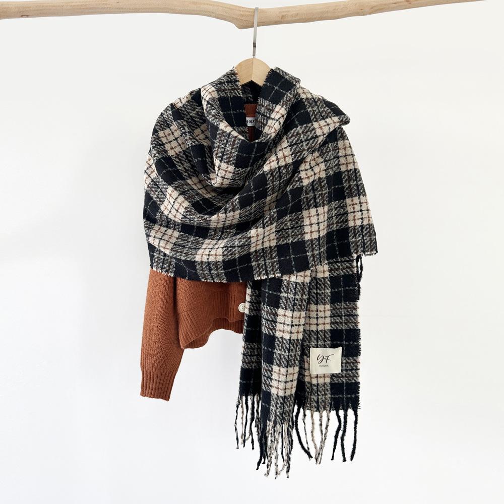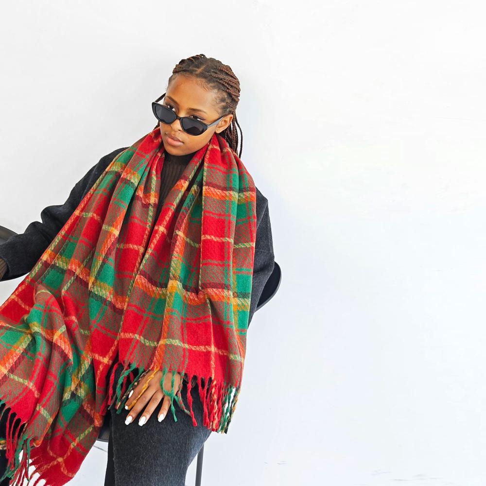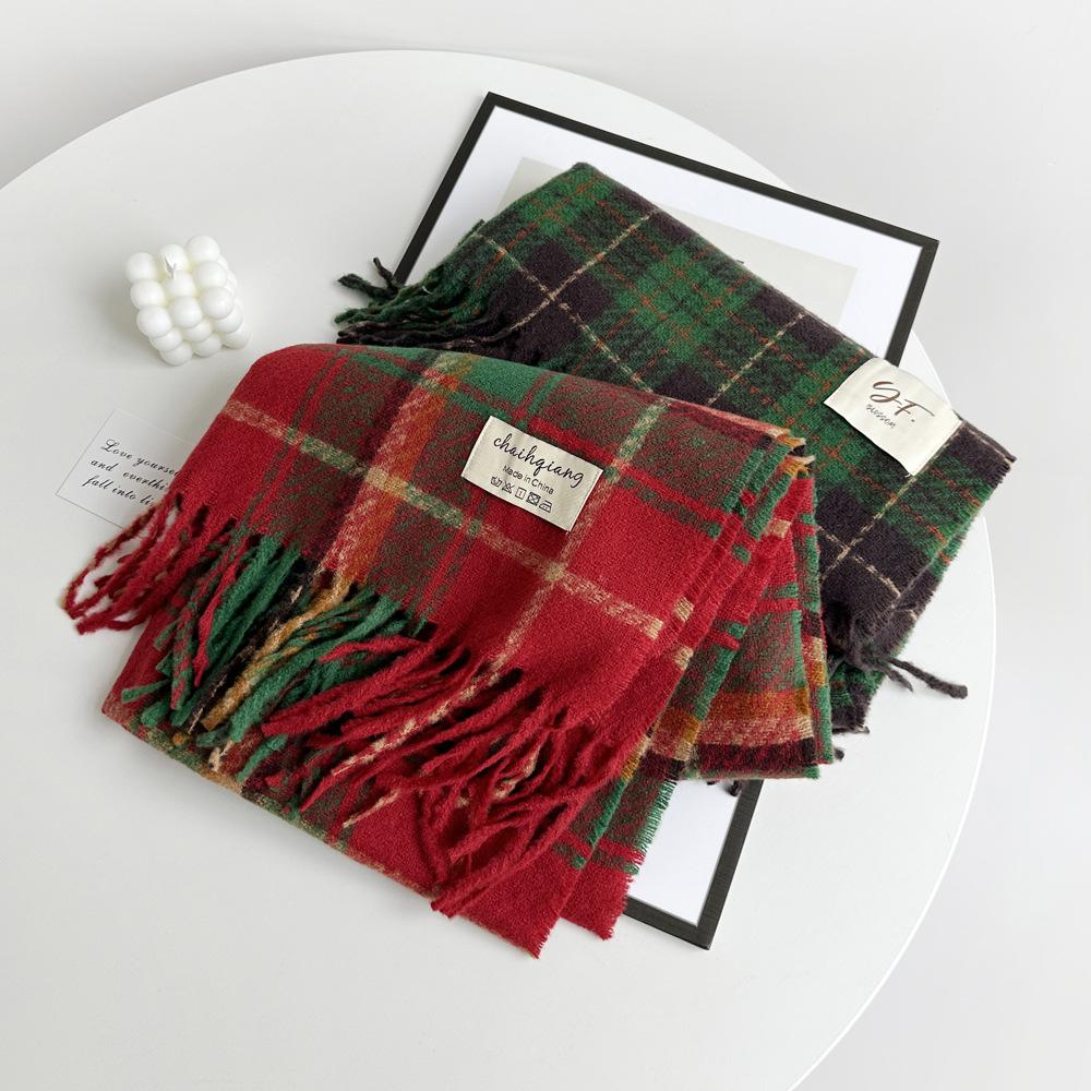 Bufanda de cachemira de imitación para mujer, otoño e invierno 2023, color a cuadros, gruesa, cálida, al por mayor, estilo Joker