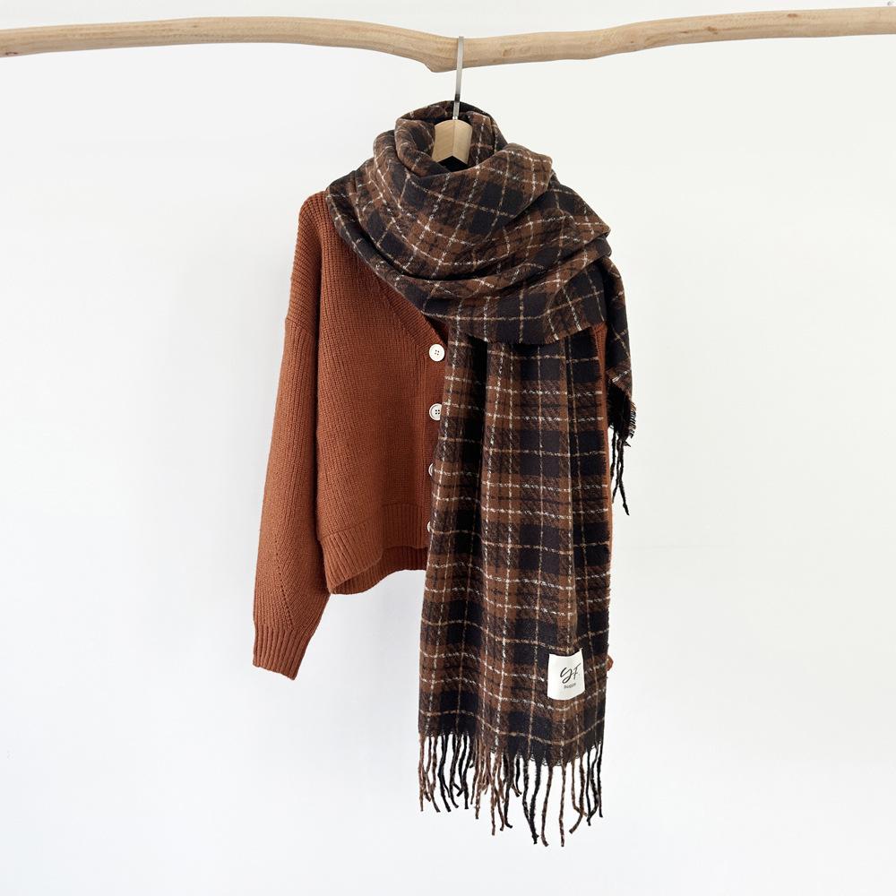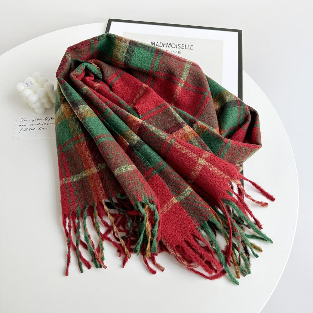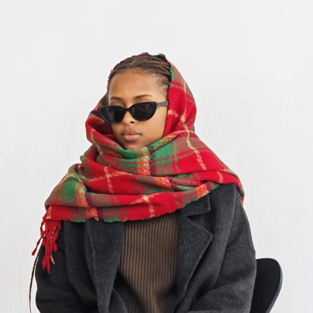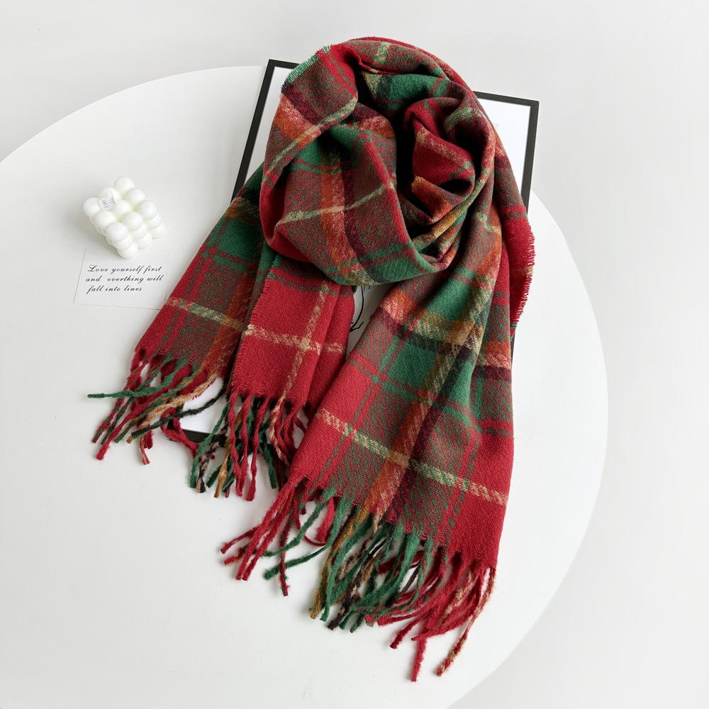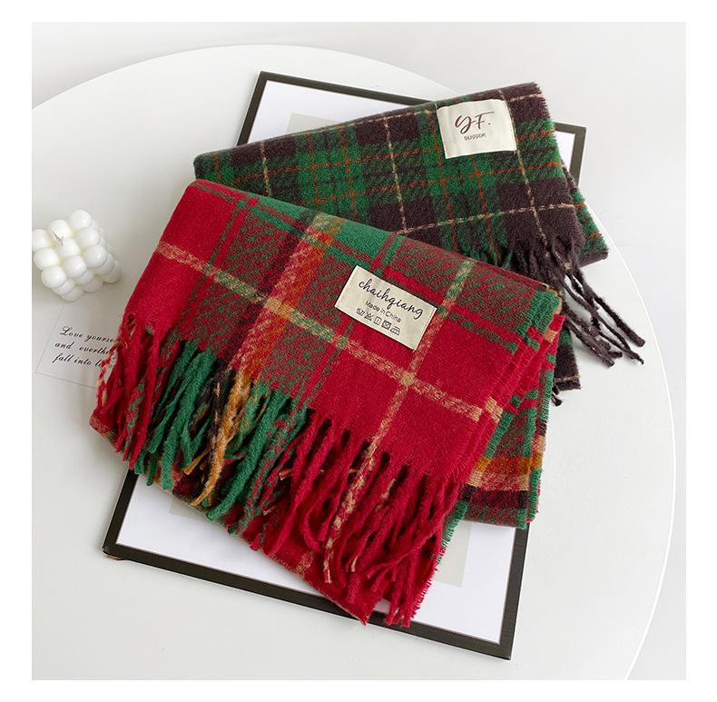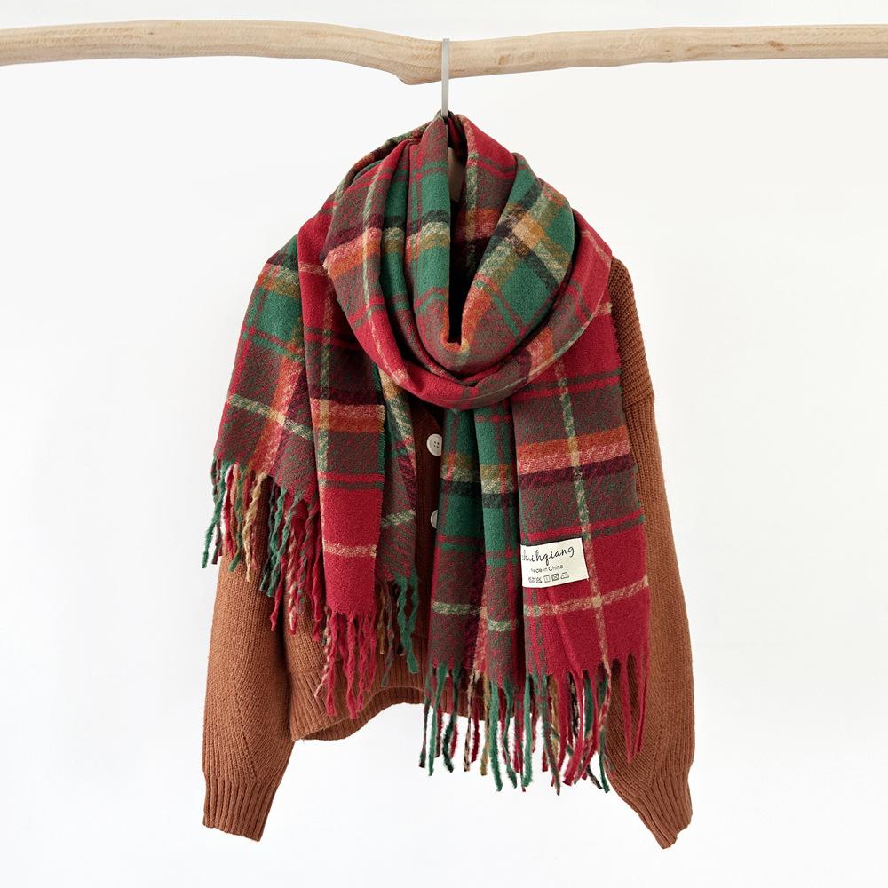 Bufanda de cachemira de imitación para mujer, otoño e invierno 2023, color a cuadros, gruesa, cálida, al por mayor, estilo Joker