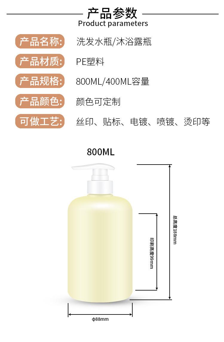 Fabricante Junshuo, venta directa al por mayor, botella de champú de plástico PE de 800 ml, botella de gel de ducha tipo pulsador, personalización